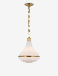 The Absil pendant features a clean, mid-century style inspired by the architecture of Frank Lloyd Wright. Its brass frame features an artful arrangement of varied glass panels, diffusing the light and creating a striking profile overhead. This pendant is perfectly sized to elevate an entryway or hall.
