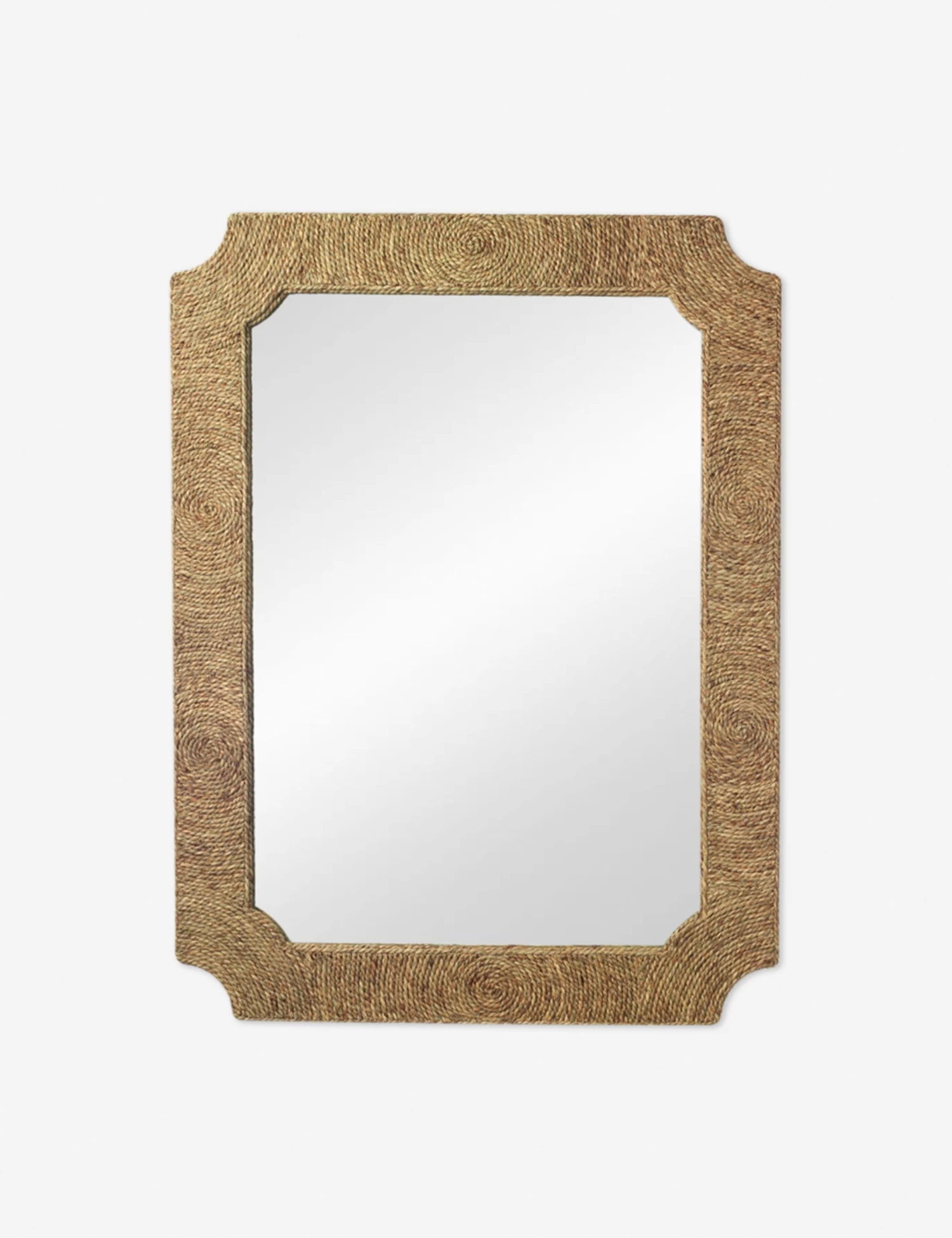 An intricately woven pattern brings eye-catching appeal to this unique mirror. The scalloped corners offer a timeless silhouette, while the seagrass frame inspires a fresh textural touch. Hang this mirror in your powder room or living space for a warm organic tone.