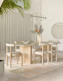 Ako brings an organic look to a lantern-style pendant. Ribbed lines add texture to the bulbous silhouette, bringing a delicate touch to its glowing form. This hanging light’s delicate paper shade, paired with a minimalist black canopy and suspension, floats over the room.