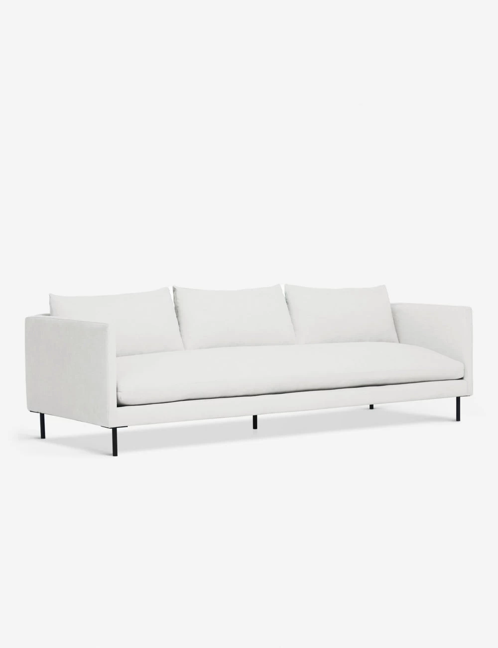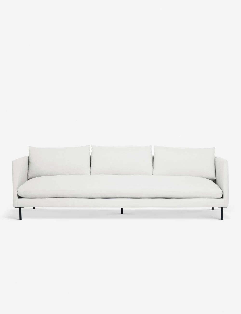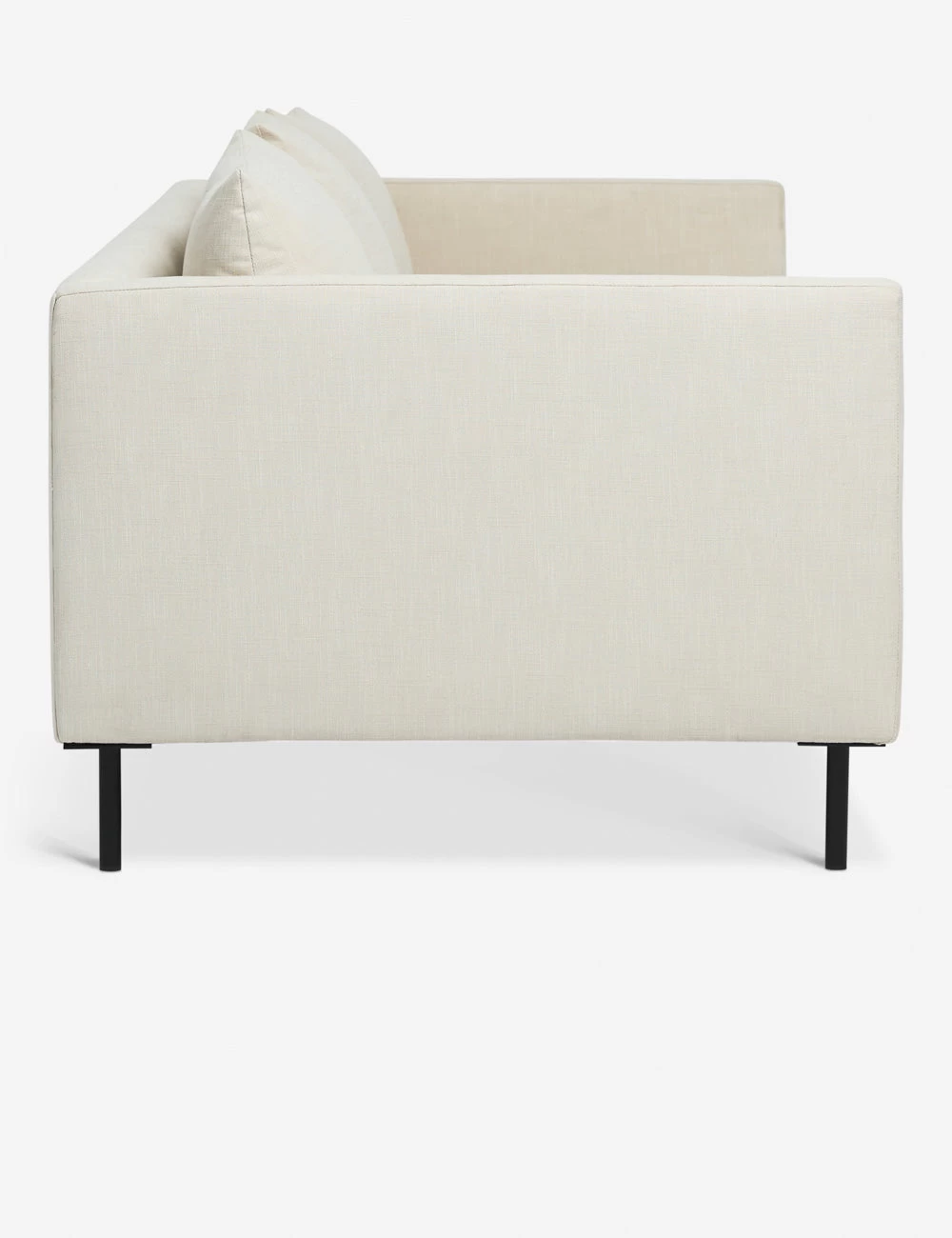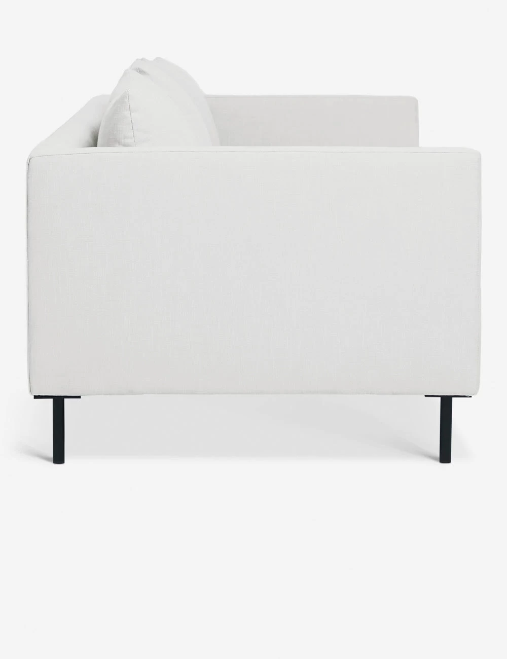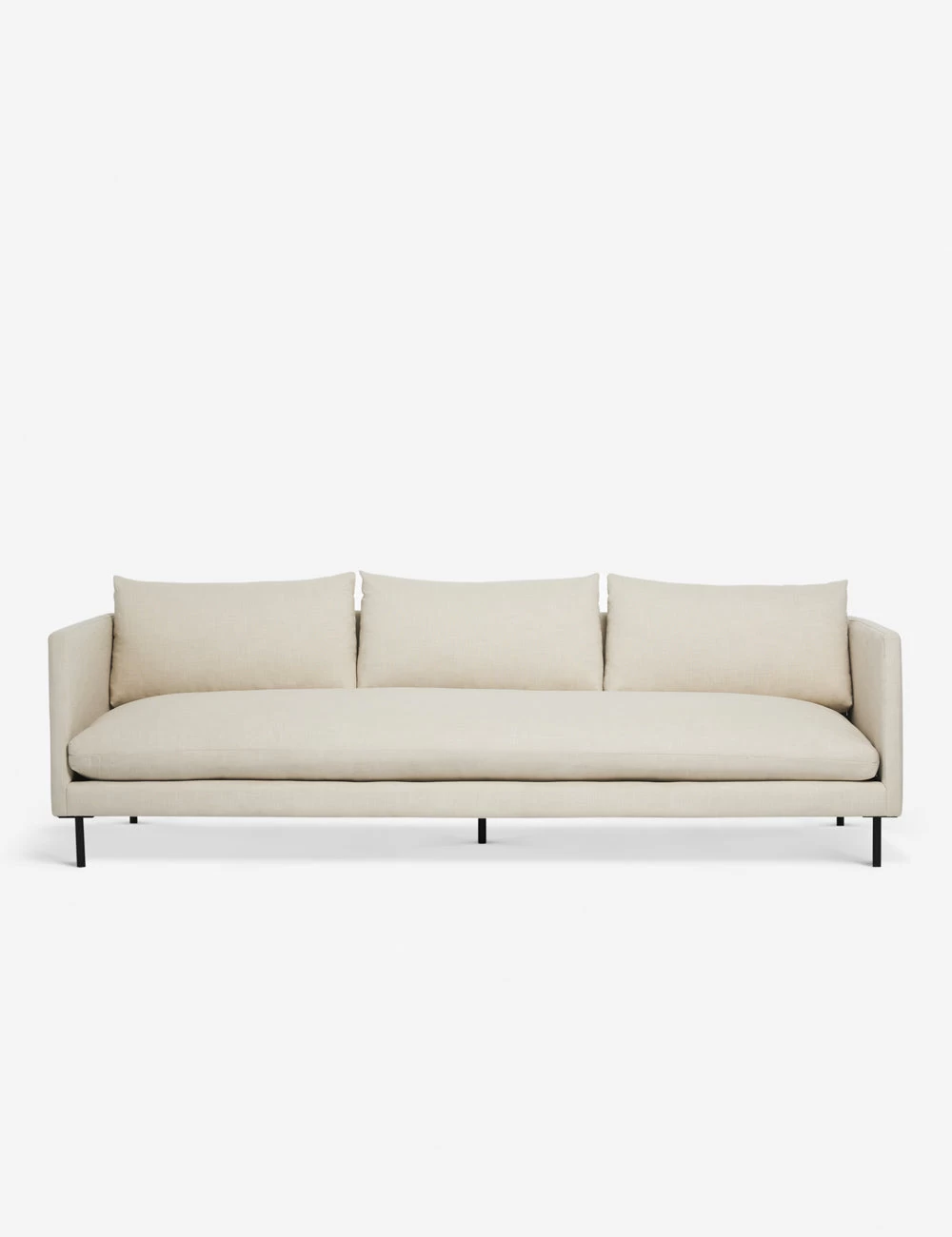 Reimagine your living room with this chic, linen sofa. Set on metal dowel legs, this couch offers an airy profile for a look that feels fresh and open. The slim-armed body holds a long plush seat and pillow cushions for a soft and inviting lounge-style seat.