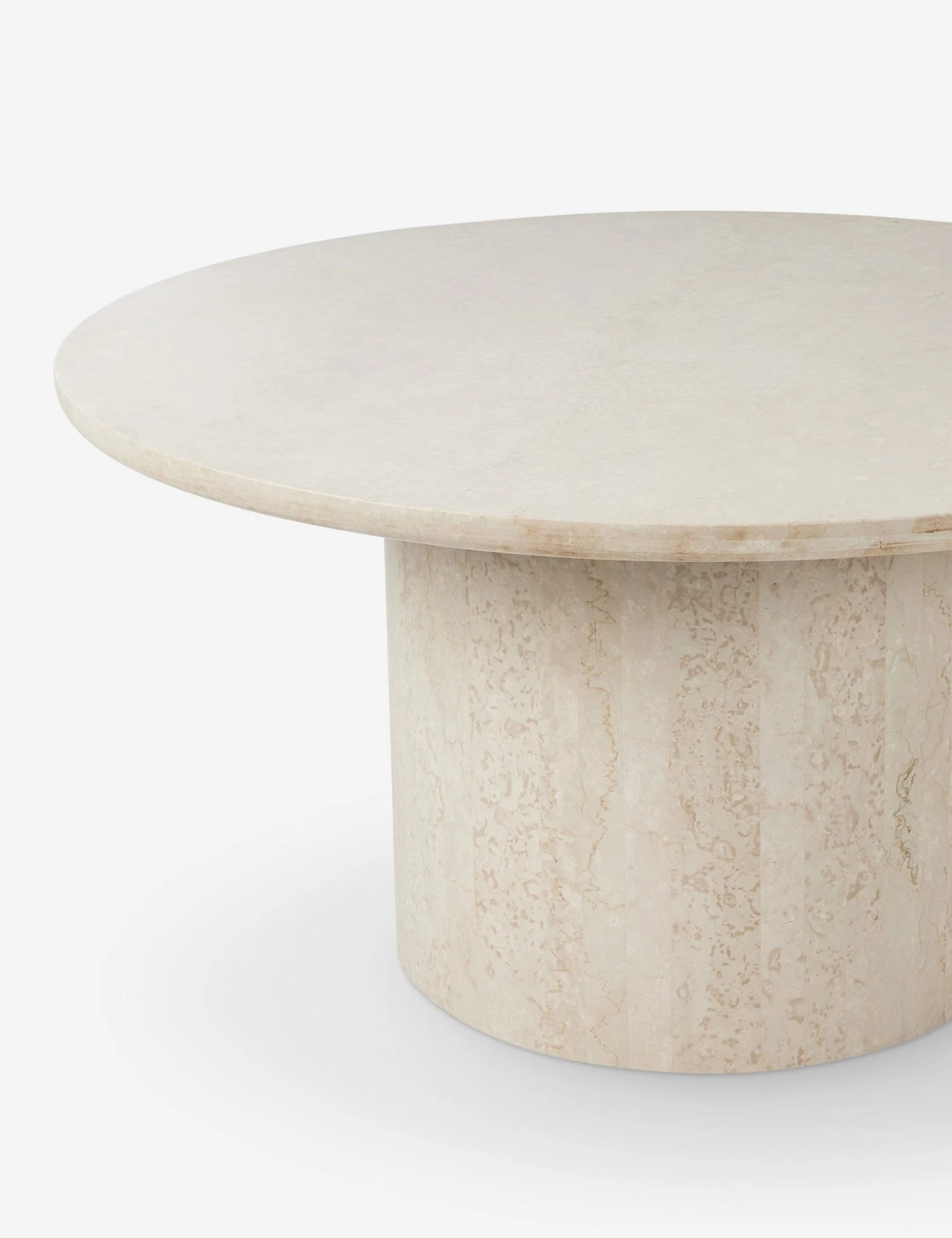 Luxury shouldn’t stop at your patio. This marble dining table is set to elevate al fresco entertaining. The monolithic silhouette features a round top with strips of marble on the base honed to shape and sealed to bring the clean impact of marble to a fresh air setting. Cover or store the table inside during inclement weather and when not in use.