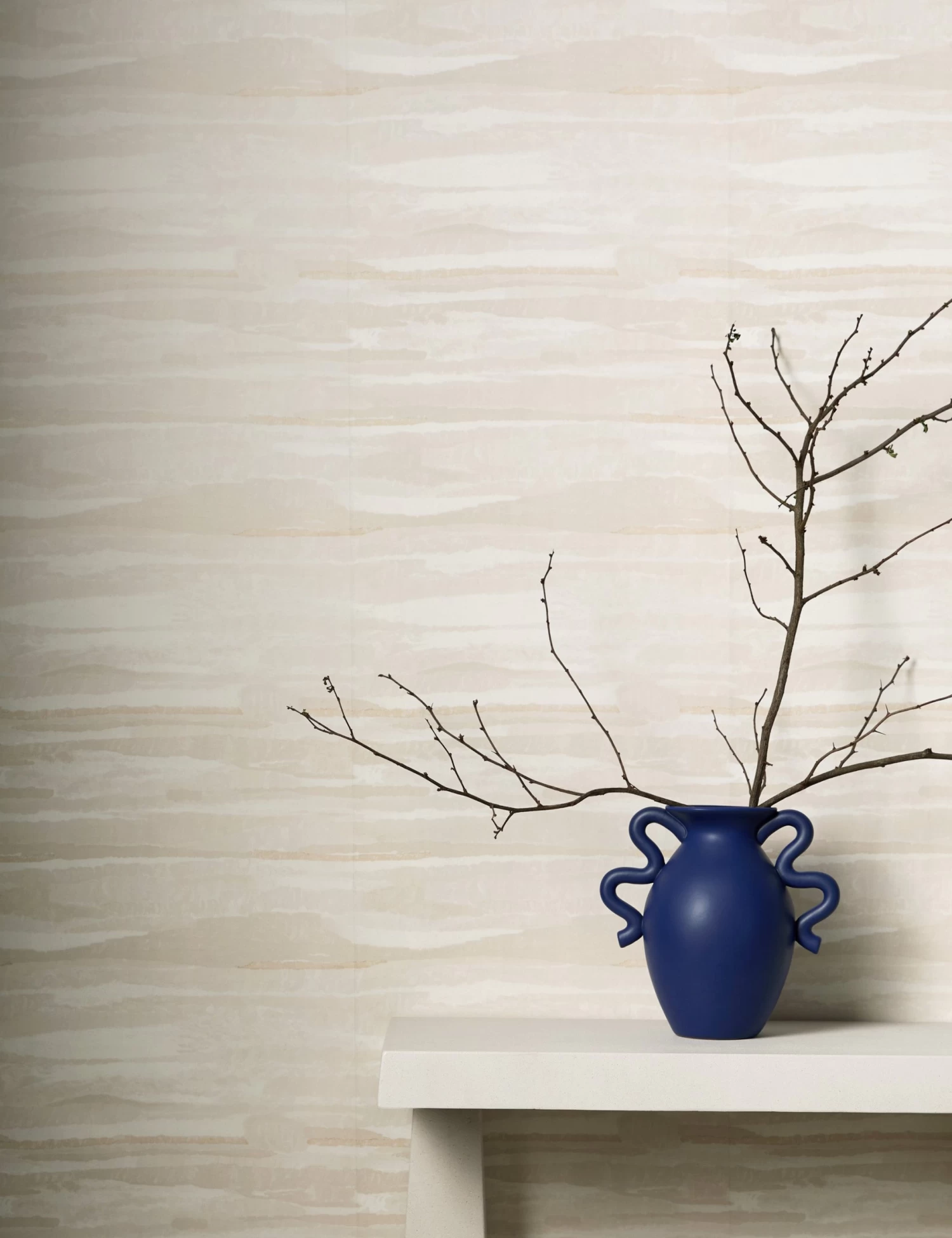 Ground the room with our Alucia wallpaper. The abstract design features soft striations in mineral tones that enrich your palette with versatile appeal. This vinyl wallpaper offers elevated style with a practical touch for any space—from layering texture into a high-traffic area or kitchen to inspiring a home spa feel in your en suite or bath.