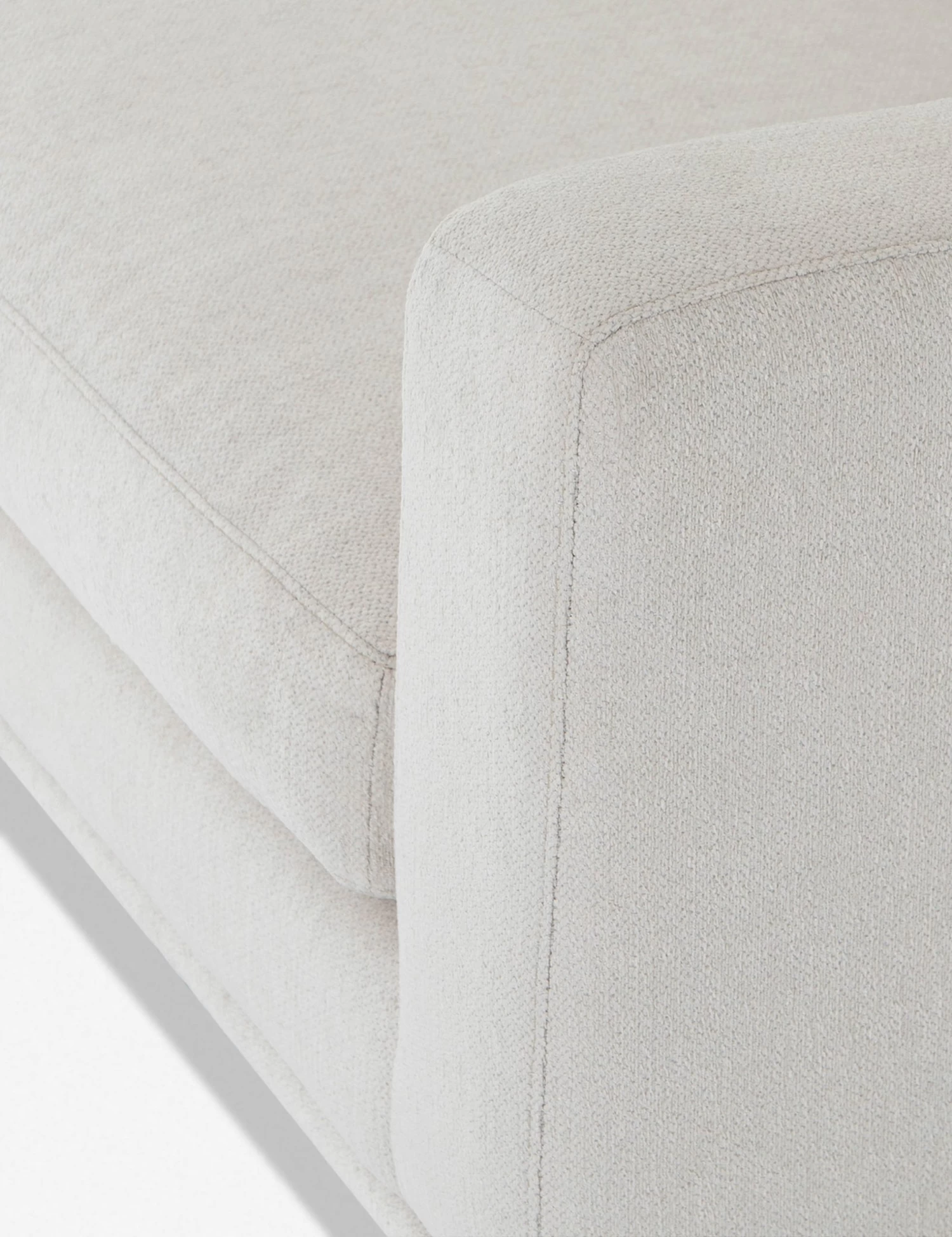 This sofa pairs light neutral upholstery with a statement-making silhouette to provide a tailored touch for a curated space. Clean-lined arms lend this living room sofa a sleek look, while the feather-blend cushioning and performance fabric offer an inviting place to land. Finish the aesthetic with sculptural accents and artistic decor for a refined feel.