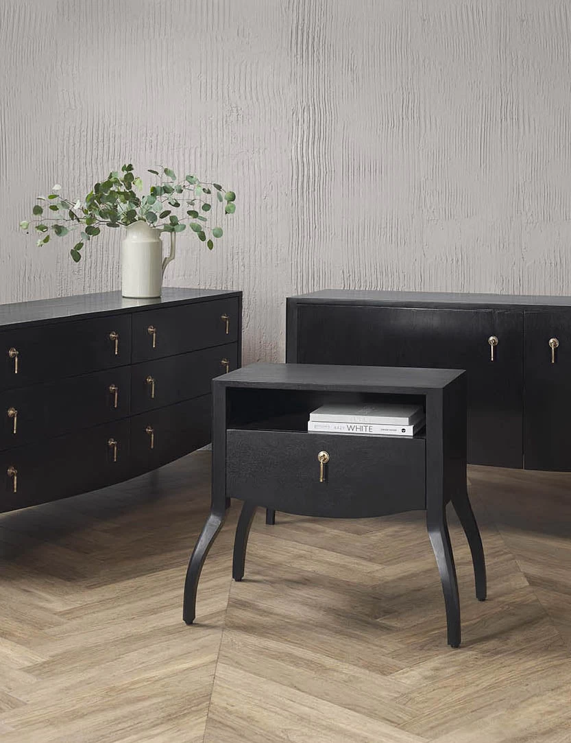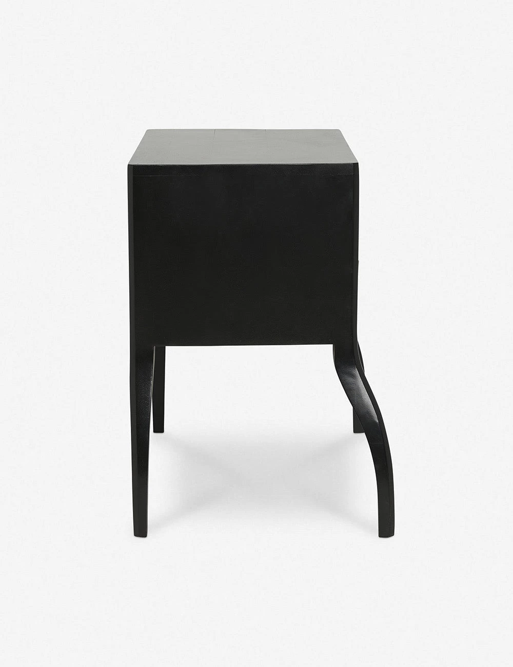 Elevate your space with the dramatic curves and clean-edged silhouette of this nightstand from the Anabella collection. An open shelf and spacious drawer pair sleek elegance with practical appeal in this dark-finished bedside table.