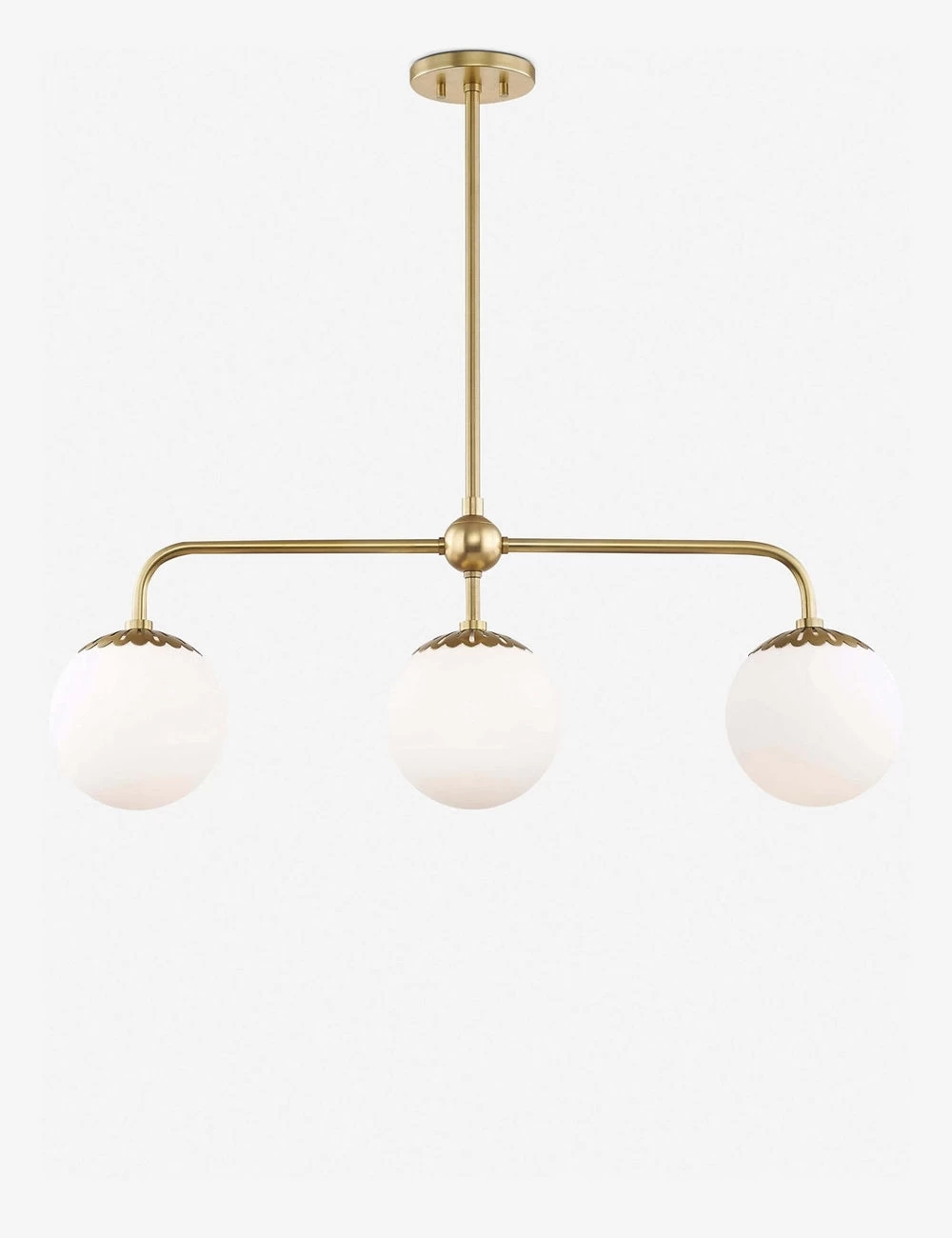We’re all about this 3-light chandelier, perfect for lighting up your dining room or kitchen island. Frosted globe bulbs and filigree detailing give it a transitional look that goes with a wide variety of aesthetics.