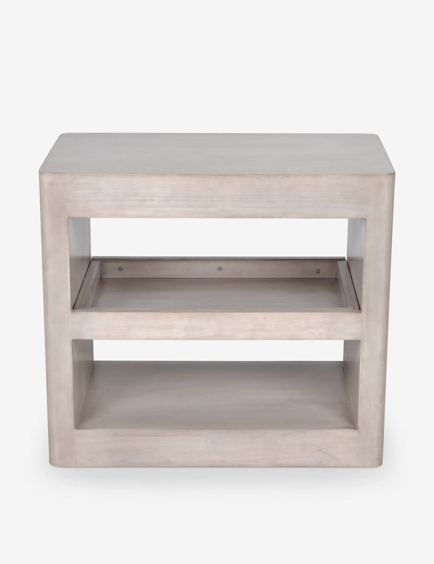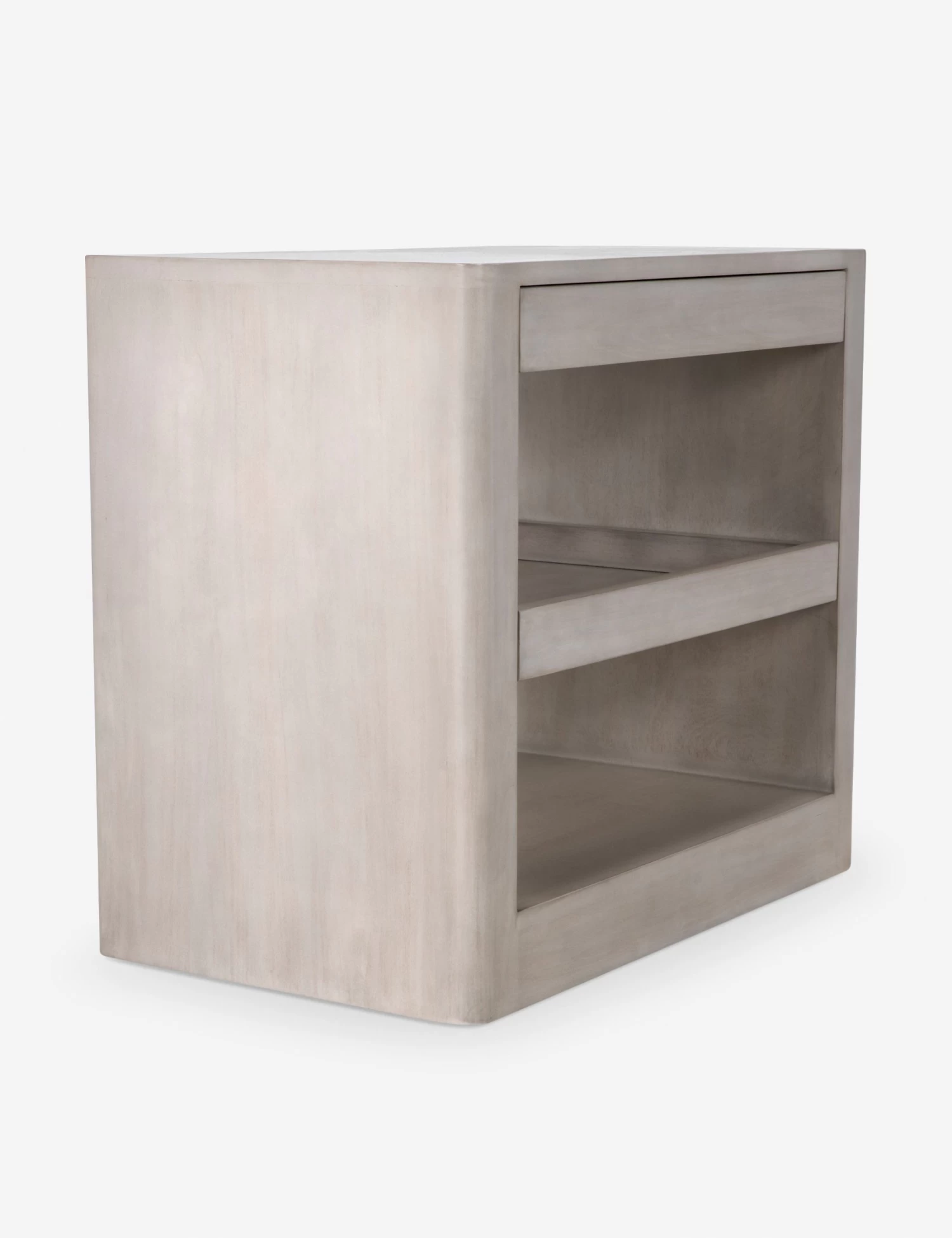 Scandinavian form and function shine through in our Arabel nightstand. Two open shelves—one sliding—and a slim drawer save space without sacrificing style. In a light wood finish, we love this bedside table with a pastel color palette and other modern pieces.