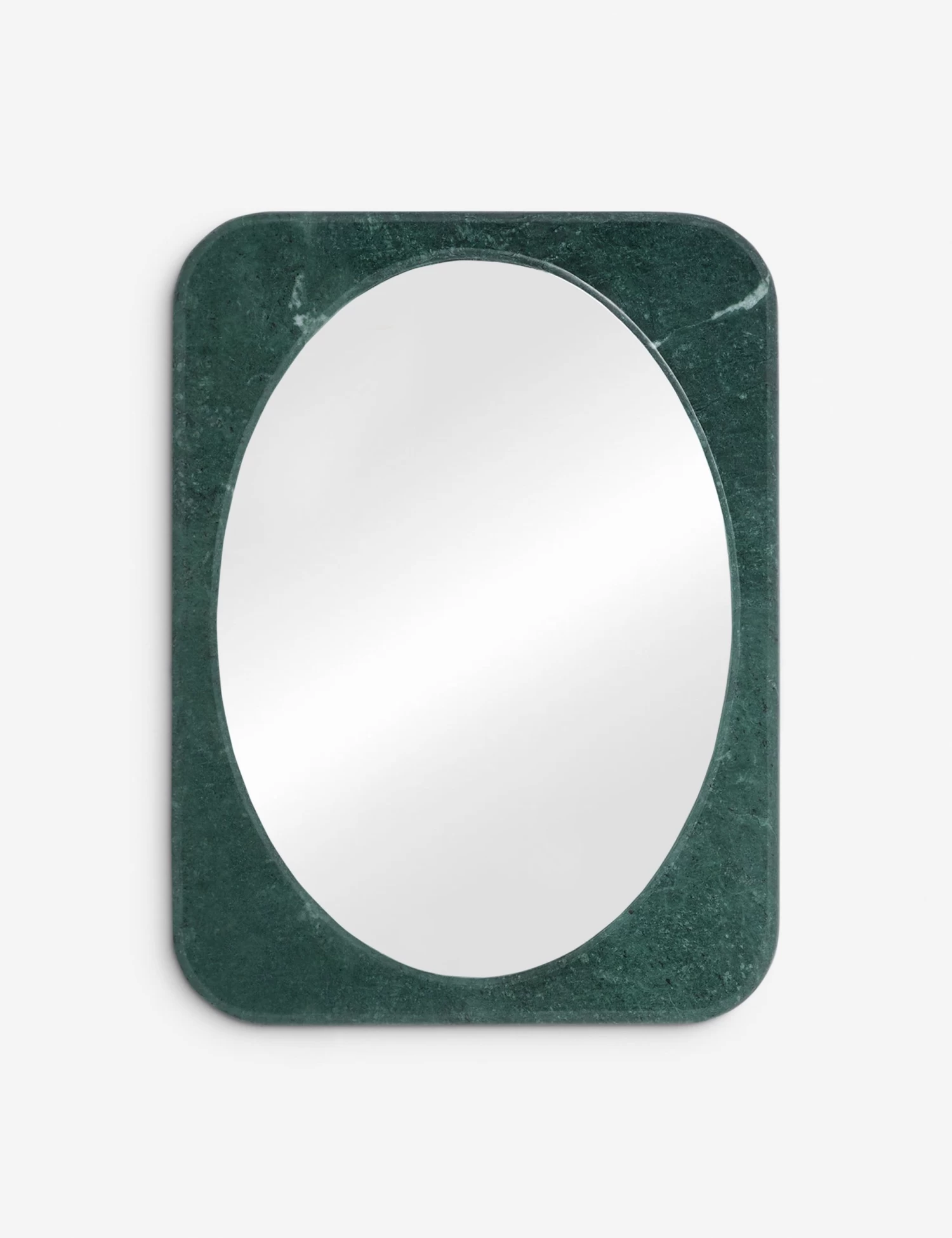 Our Arista mirror blends modern shape with luxe materiality. Framed in green marble, its oval inset offers depth and dimension with a polished edge. Timeless and bold, this wall mirror brings an eye-catching statement to any curation.
