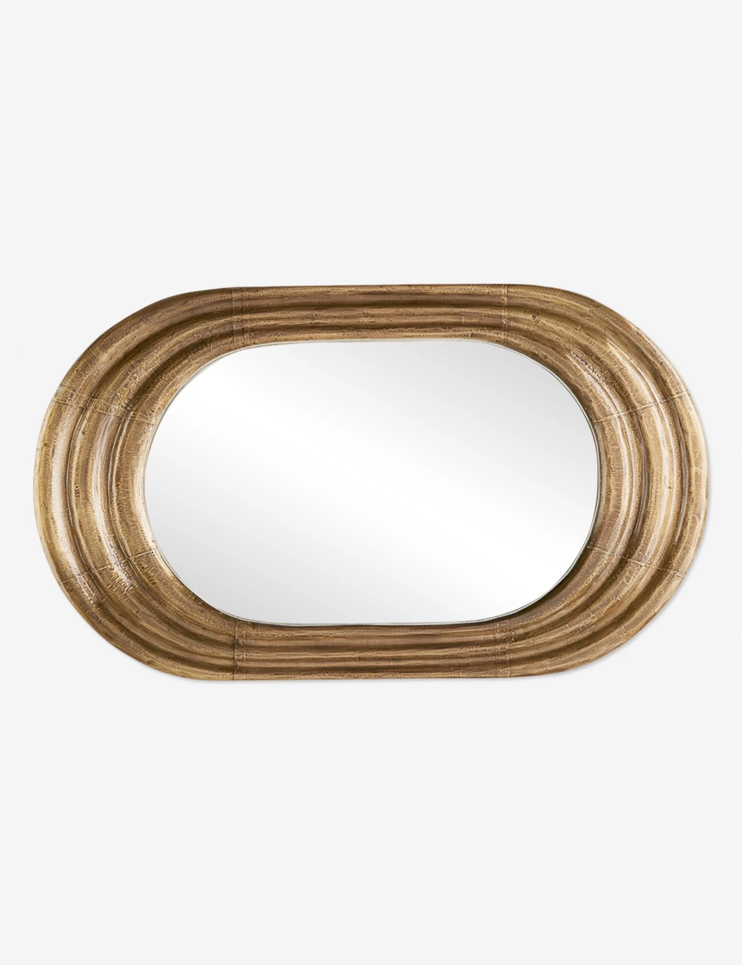 Shapely concentric bands give an organic feel to the frame of this brass-clad mirror. The antiqued patina and nail-studded joints offer endless textural character with industrial undertones. Hang this wall mirror in your entryway or living space for a seasoned look.