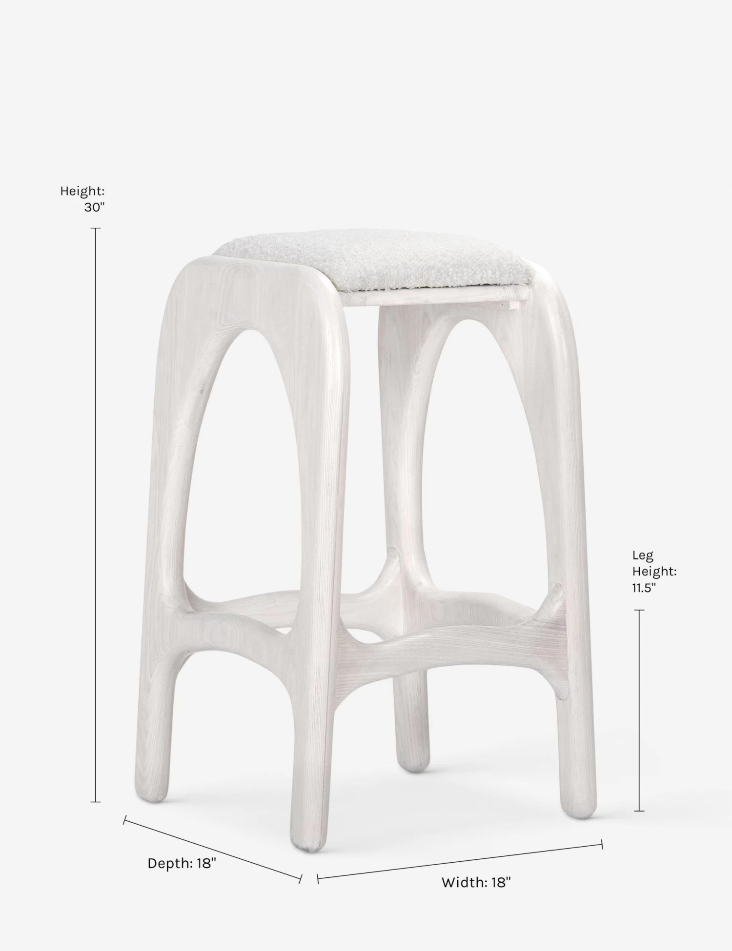 Architectural lines and rounded edges offer this ash stool a soft, rustic appeal. Textural upholstery offers an inviting touch to this versatile seat, whether styled as a bar stool or floated in a dynamic space.