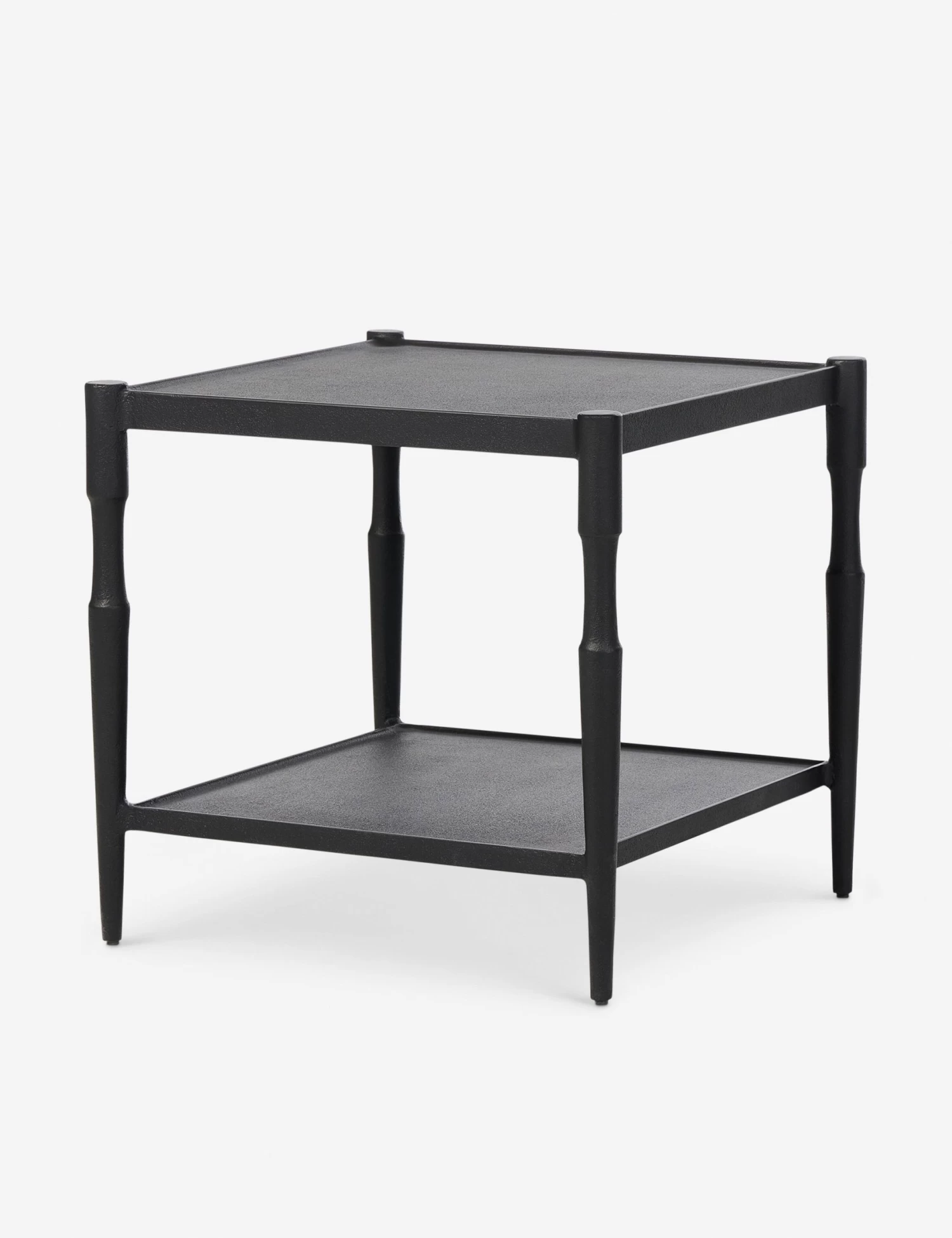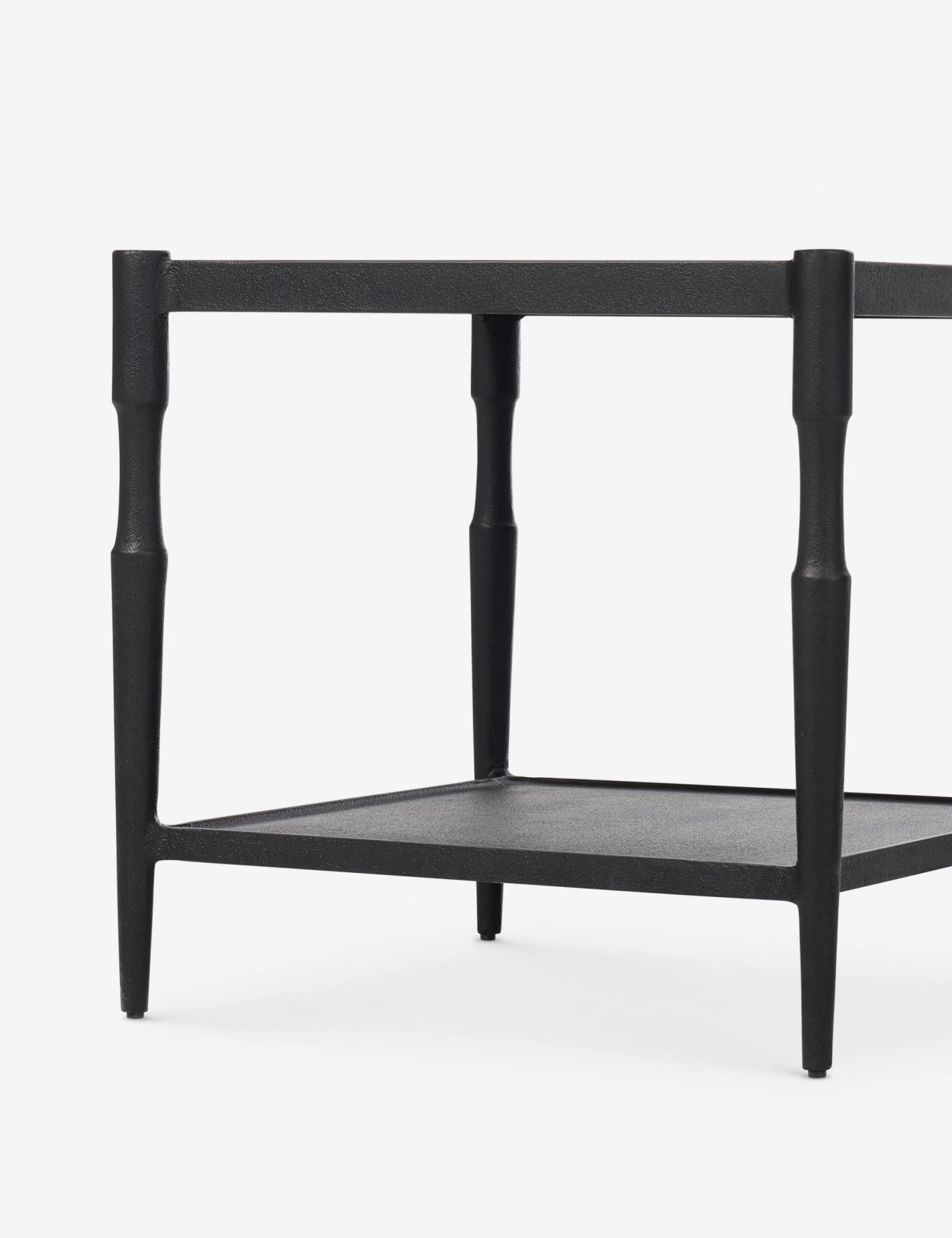 Four Hands brings their exceptional craftsmanship to a timeless collection rooted in Amber Lewis’ perennial California style. Cast iron legs frame a tray-style top with a lower shelf for added storage in the Augusta side table. This classic black end table folds into transitional and modern settings with understated impact.