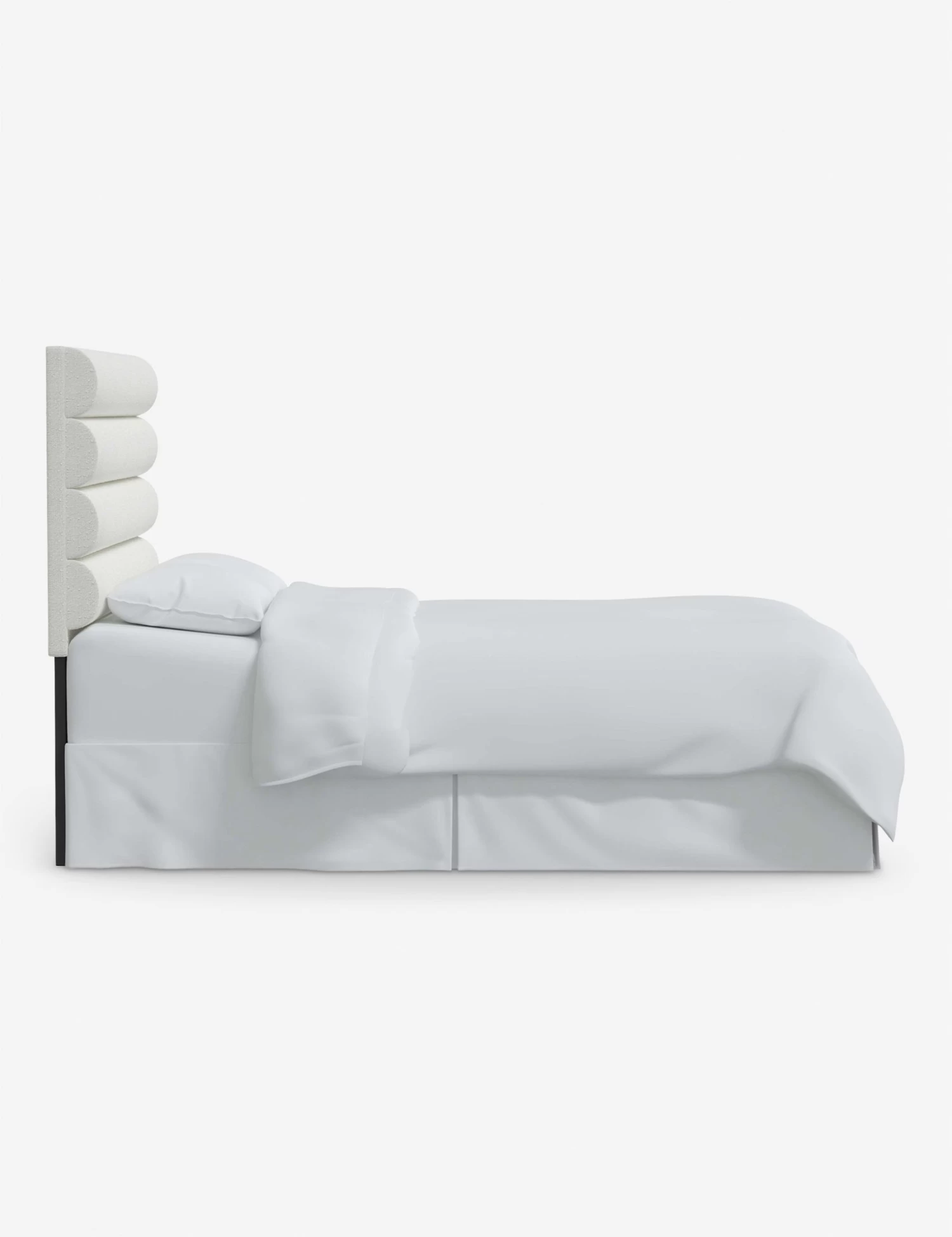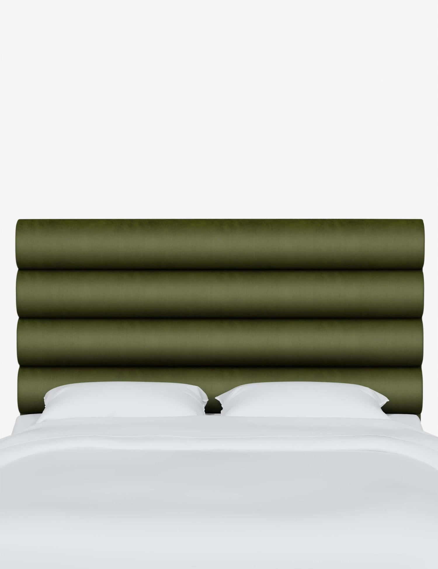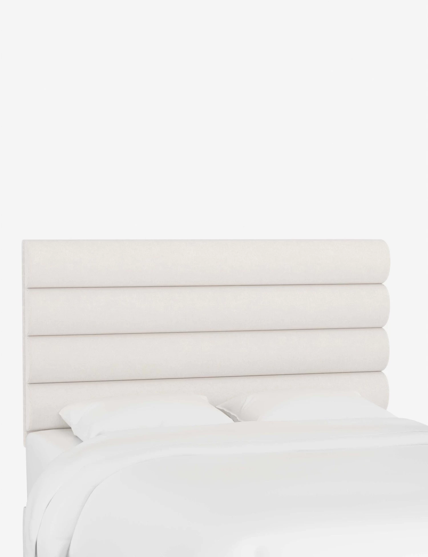 Plush sophistication abounds in this channel-tufted headboard. This trim design provides a grounding balance to any bedroom look with its crisp horizontal lines. In a variety of colors and fabrics, this headboard attaches to any standard bed frame for a fresh bedroom look.
