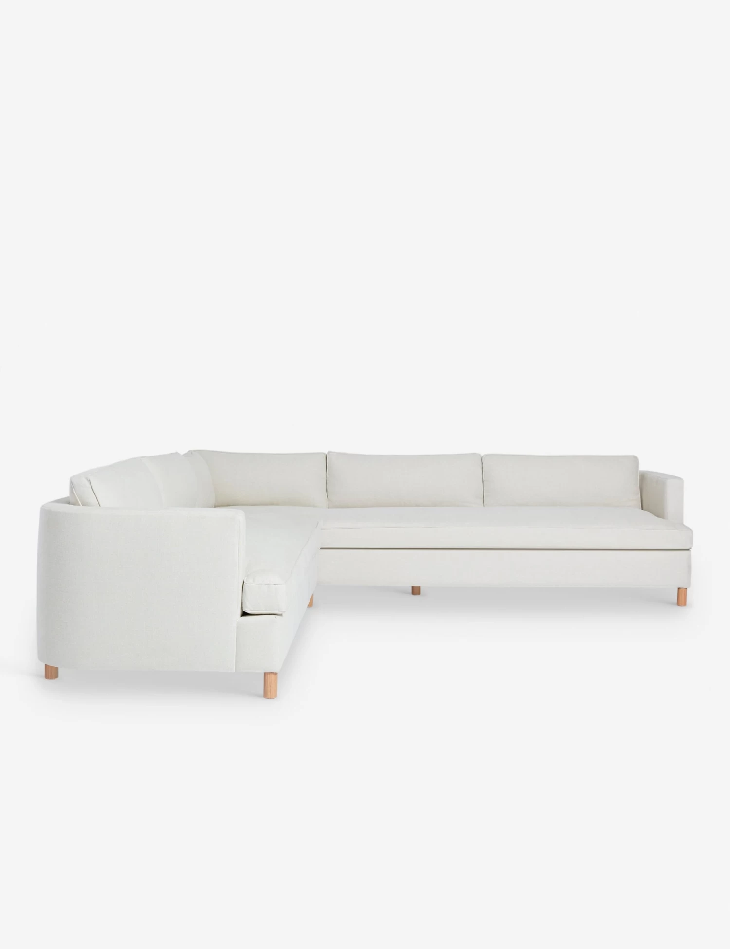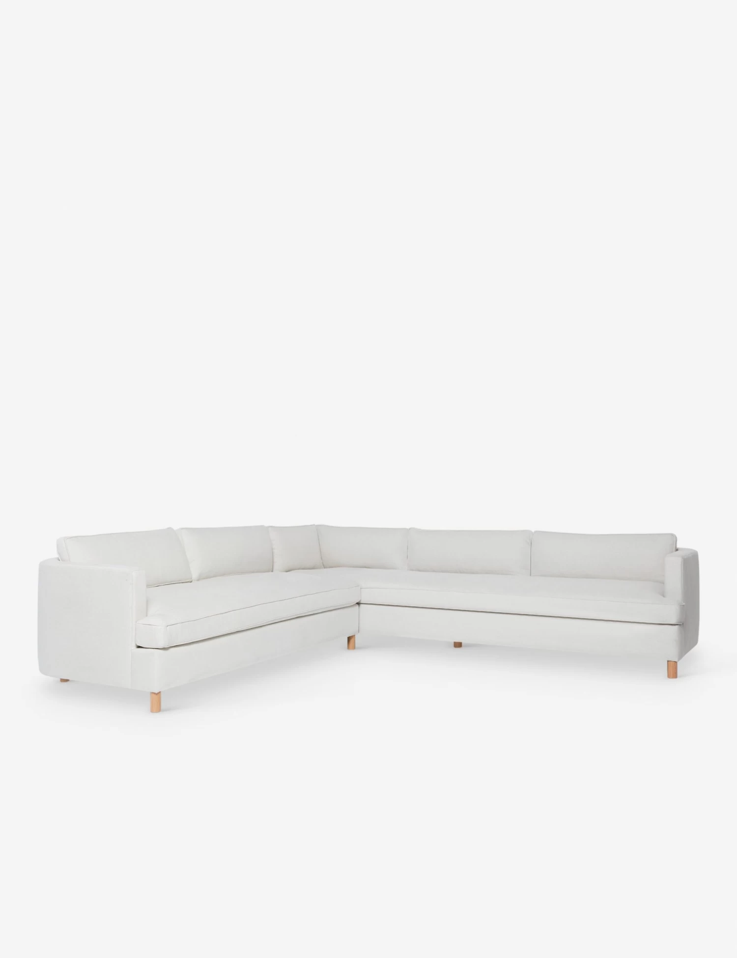 From the exclusive Ginny Macdonald collection for Lulu and Georgia, this sectional sofa features a curved back and plush, oversized cushions to bring a polished yet accessible look to your living room seating. Inspired by Ginny’s English heritage and handmade in Los Angeles, the collection fuses her British roots with her California lifestyle. This spacious corner sectional is available in a variety of fabrics and colors, making it the perfect mix-and-match piece.