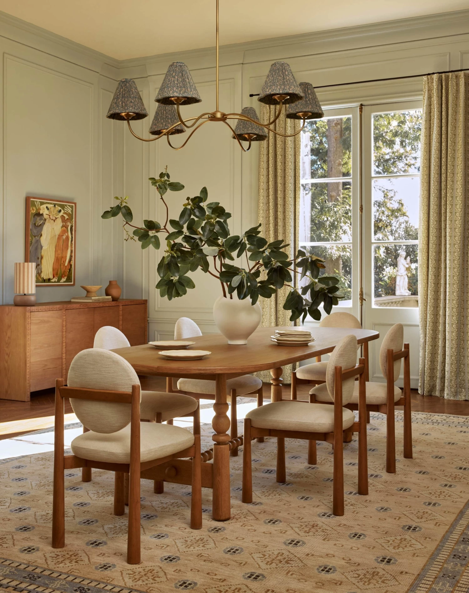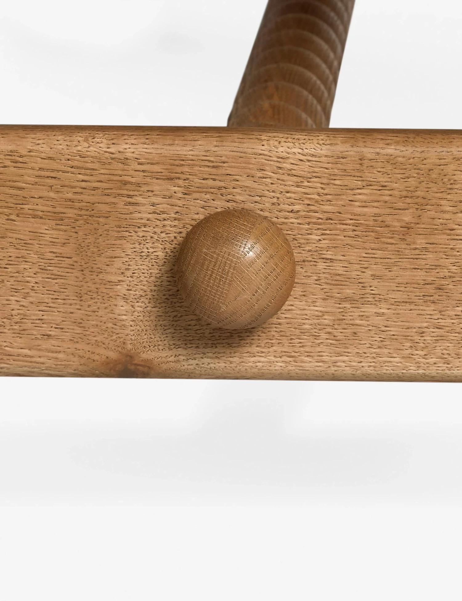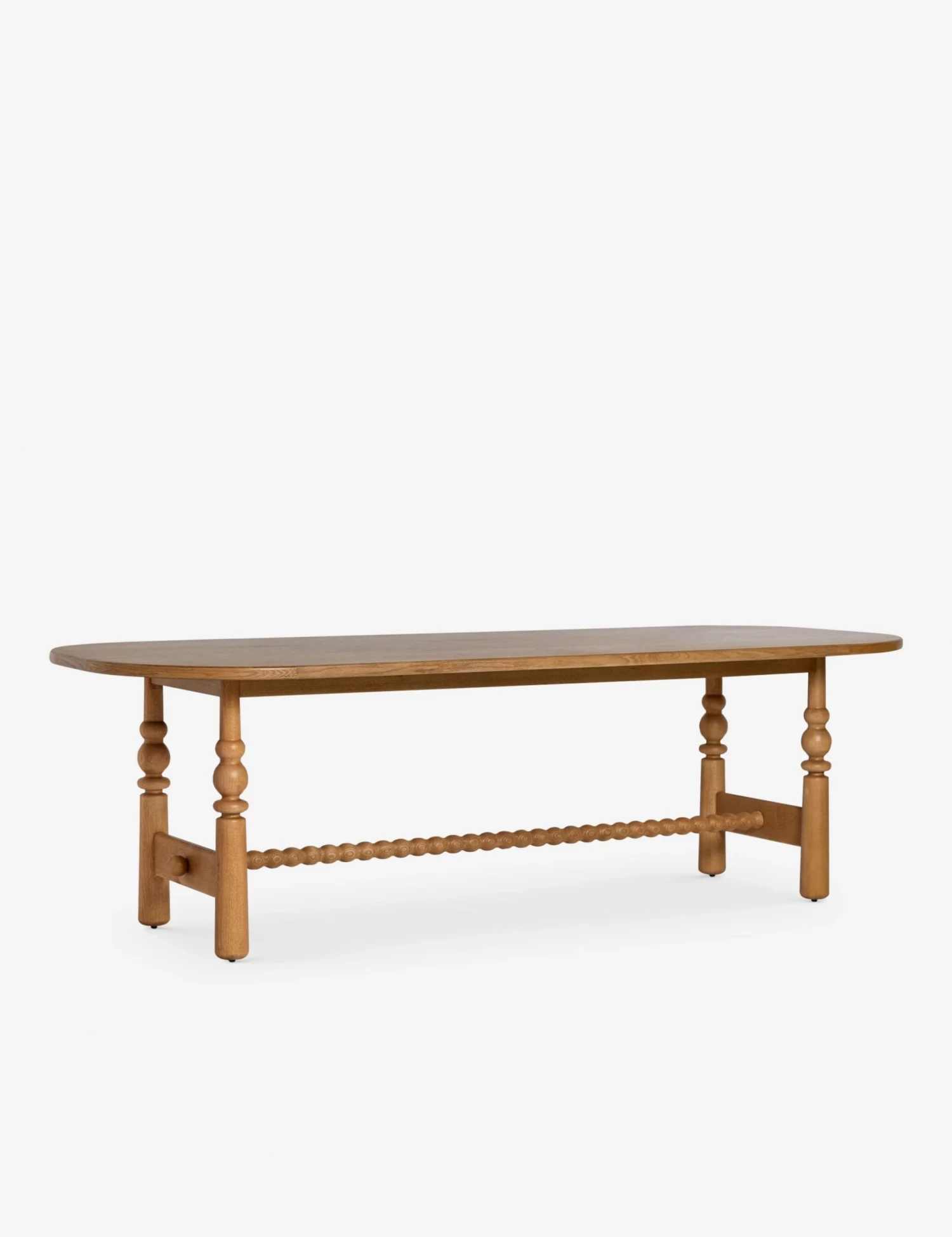 Our Blume dining table brings a modern play of form to the timeless warmth of wood. Its turned legs and beaded stretcher fashion a dynamic silhouette that can set off a transitional or modern dining space with an artful edge. Layer this light wood table with natural textures and organic elements to create a full and inviting tablescape.