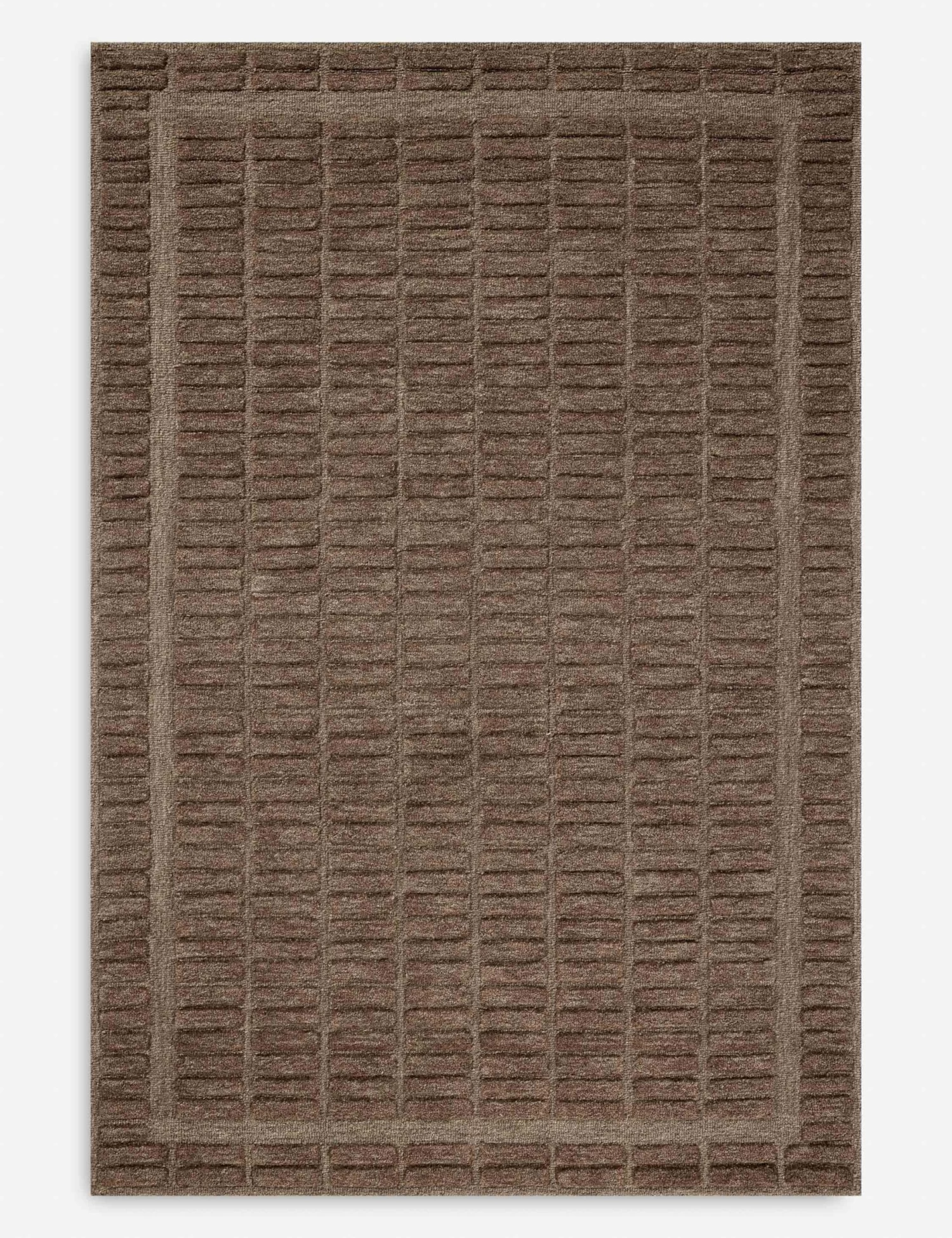 Soft texture meets fresh appeal in this signature rug collaboration from Chris Loves Julia and Loloi. This hand-tufted rug offers a tactile foundation with a tough woolen tread and subtle pattern underfoot. A tight, rectangular grid with a low border brings a grounding symmetry to the earthy hue of this design.