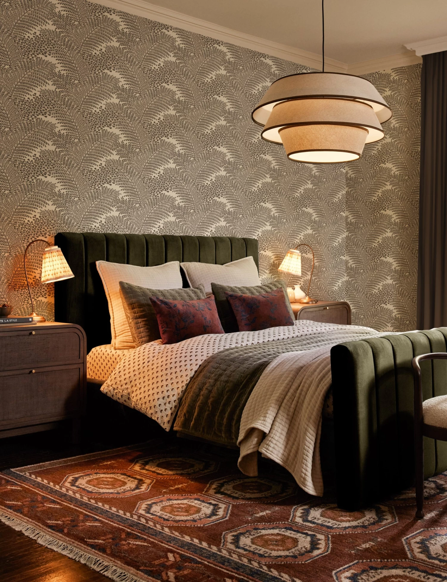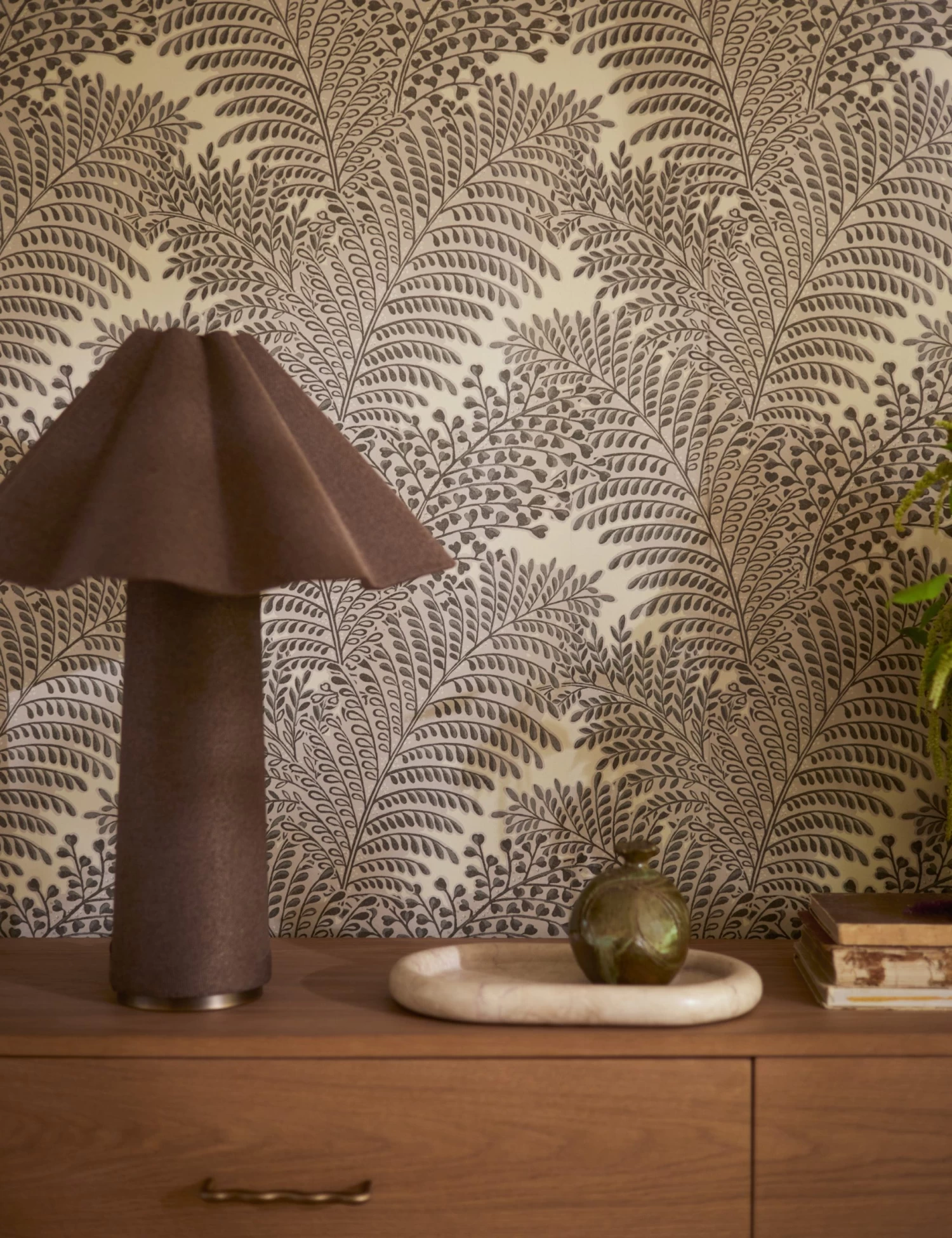 Fill your room with a rich botanical pattern. Our Bruni wallpaper features an intricate repeat of foliage in silhouette set for transitional interiors. We love the intricate detail of this modern wallpaper for a space that inspires cool sophistication.