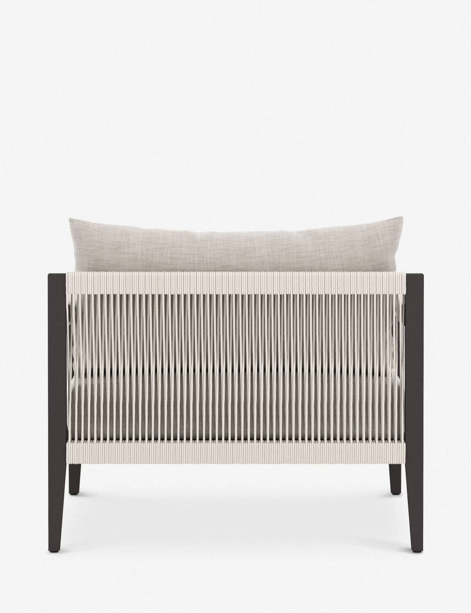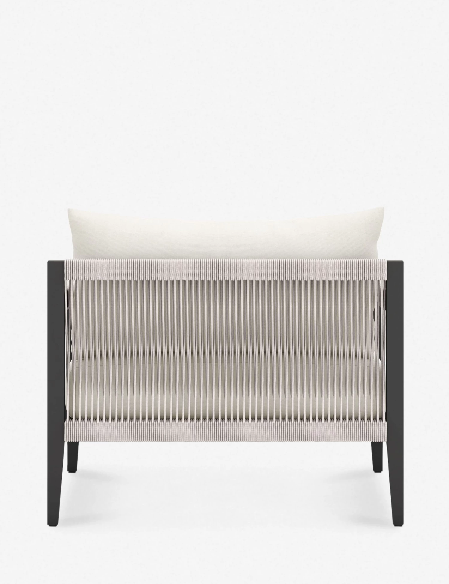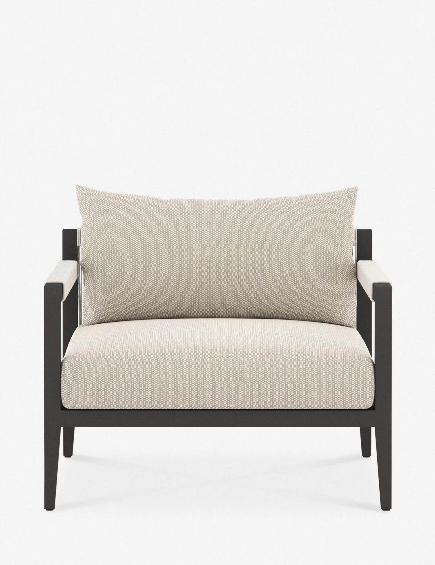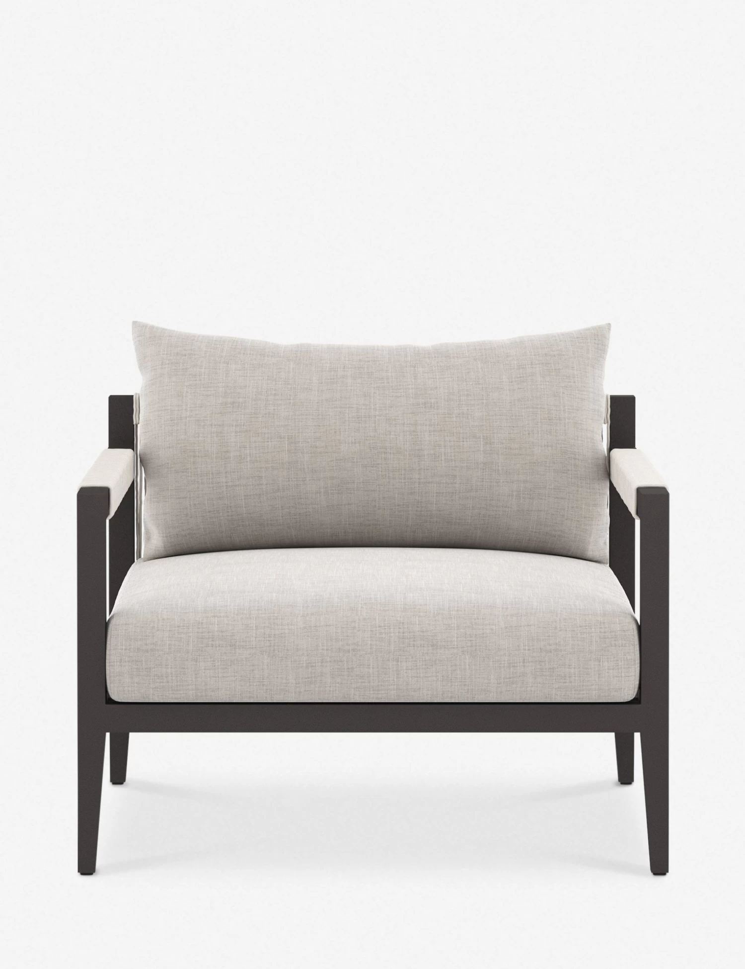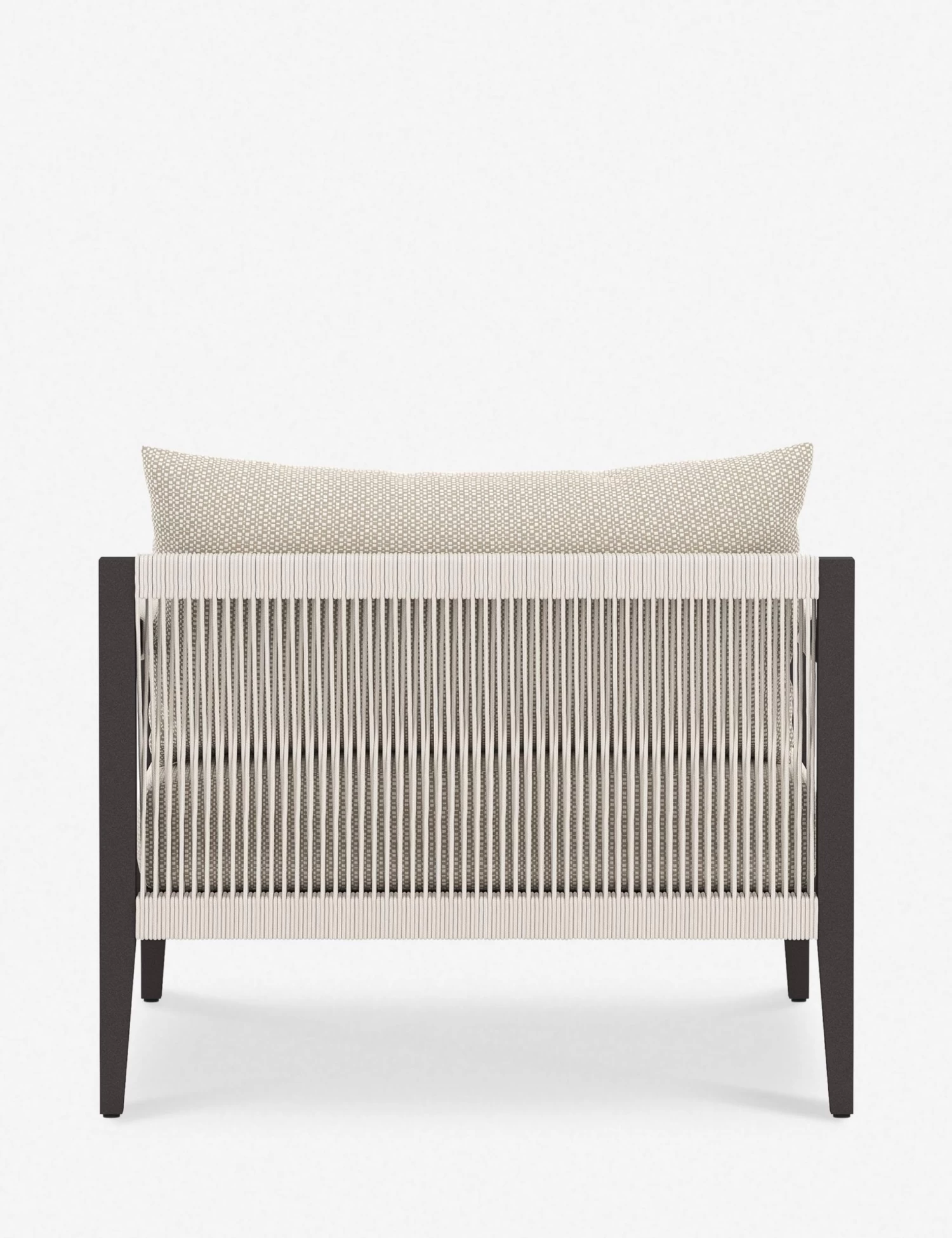 A slim, linear frame is complemented by plush cushions and woven detailing in this accent chair. The performance fabric upholstery is durable, fade-resistant, and easy to clean. We love the idea of using this occasional chair to relax poolside, on your terrace, or even in your sunroom.