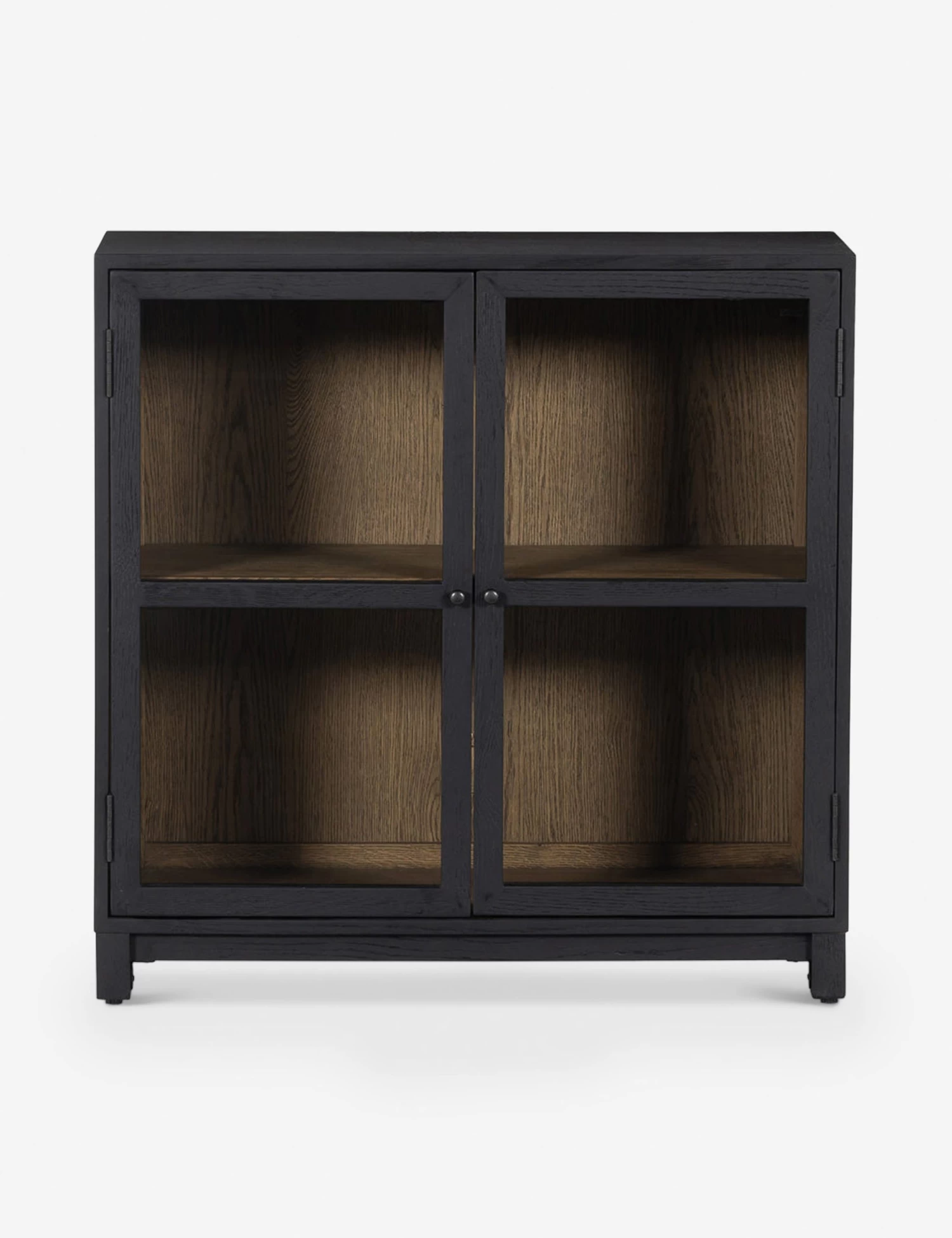 A transitional cabinet with paned glass doors and an oak frame. This small curio cabinet offers versatile storage plus an extra surface for decor. We love how the spacious shelving and natural wood grain put your favorite pieces on full display.