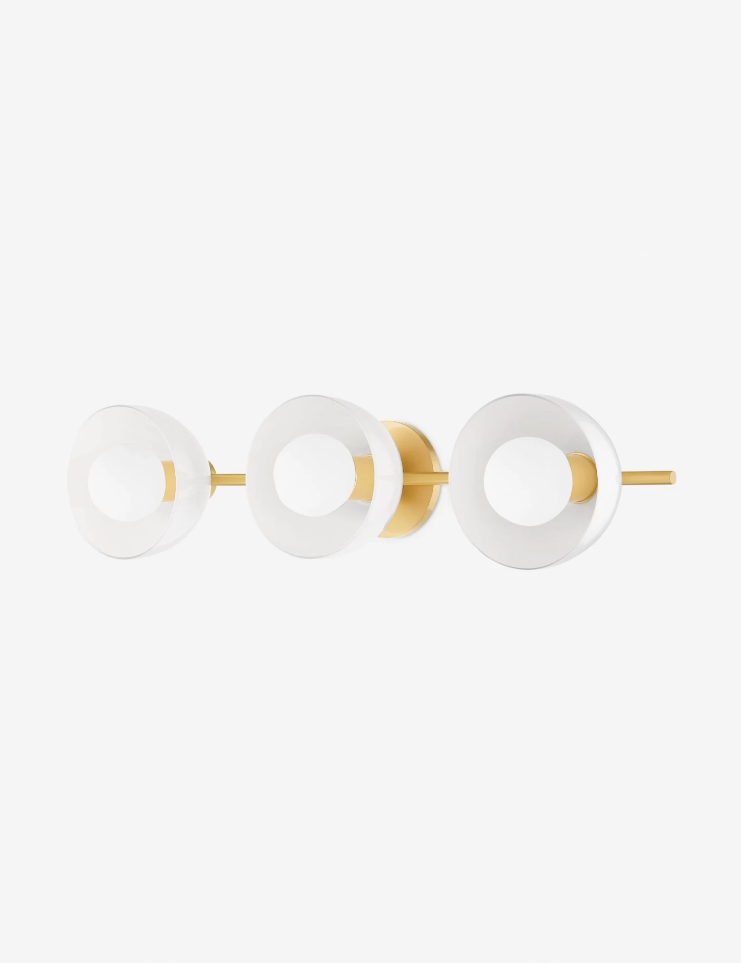 Glossy white glass and antique brass bring a polished touch to the Catriona sconce. Whether updating your powder room or styling a chic bedroom look, this wall sconce offers a stylish finish with plenty of light.