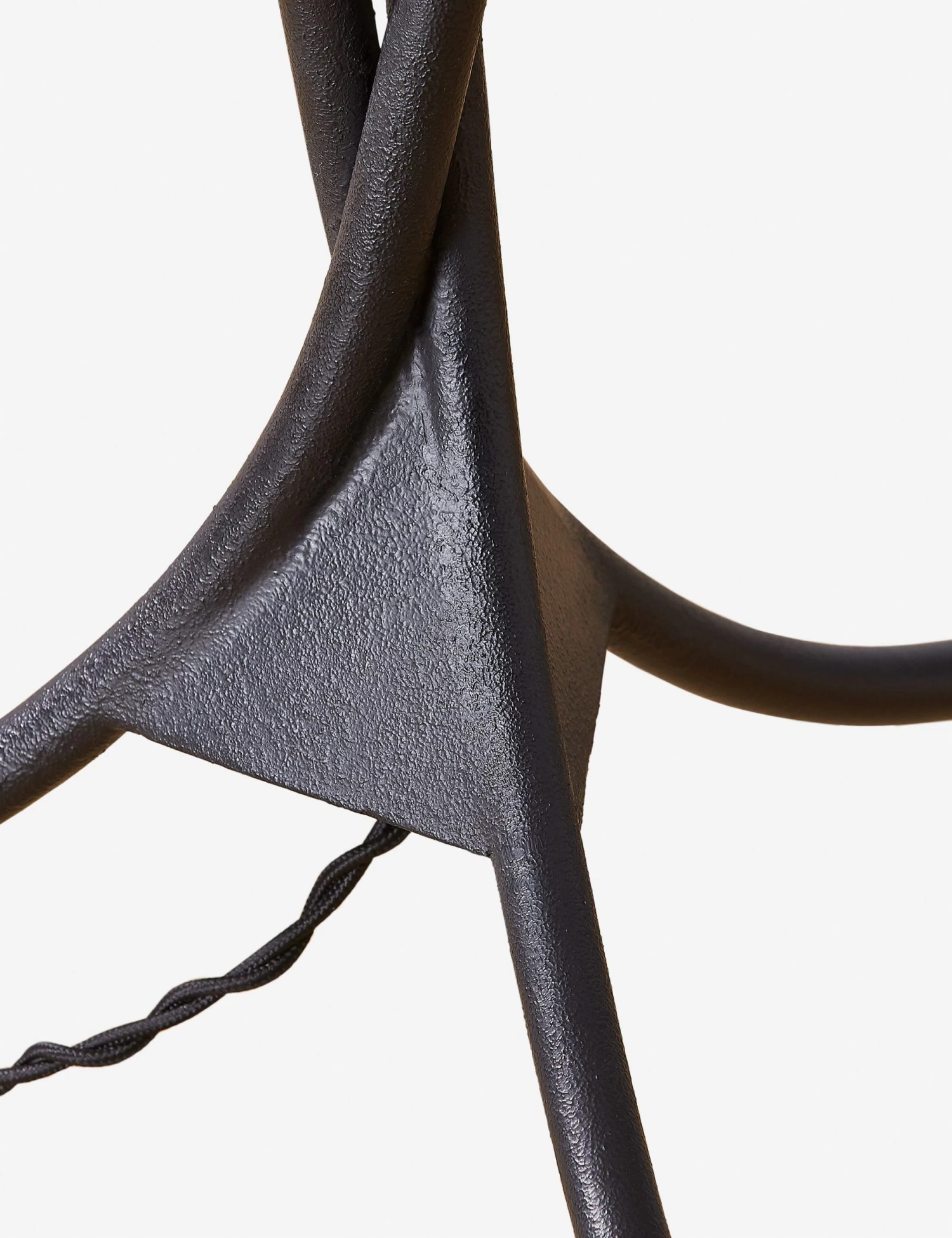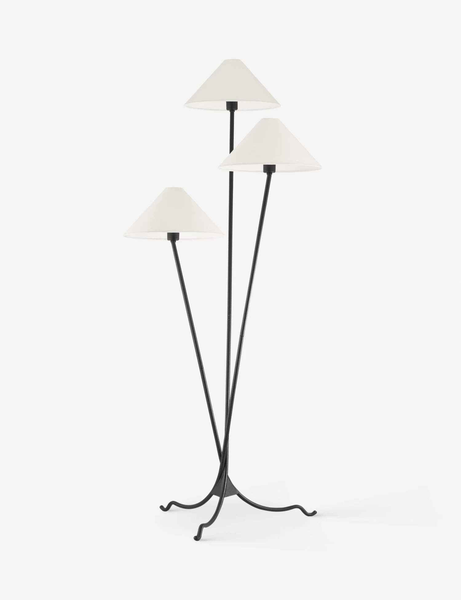 Colin King has emerged as a definitive voice in modern American design with a signature aesthetic that stems from a focus on visual storytelling. Style your look for bright elegance with the Cedar lamp. Topped with tapered linen shades, the forged iron arms fashion a clean, spare profile that will transform the room with a modern edge. A tripod design and wavy feet bring a playful visual rhythm to this floor lamp design.