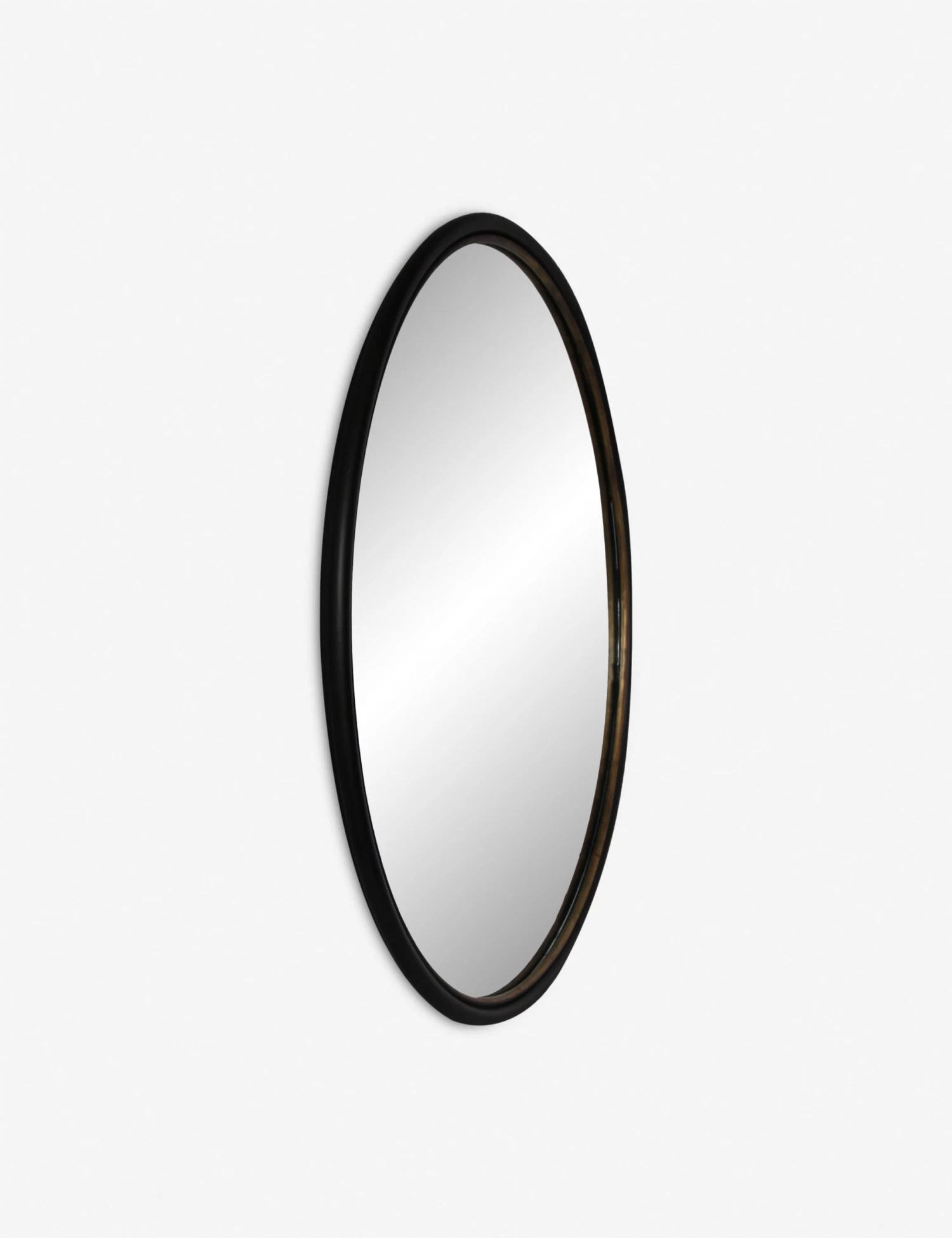Simply fashionable, this round wall mirror inspires vintage appeal with its black frame and inset golden detailing. The lustrous contrast sets off a sophisticated design with versatile styling potential. Try mounting this large mirror over your console or entryway table for a bright, open look.