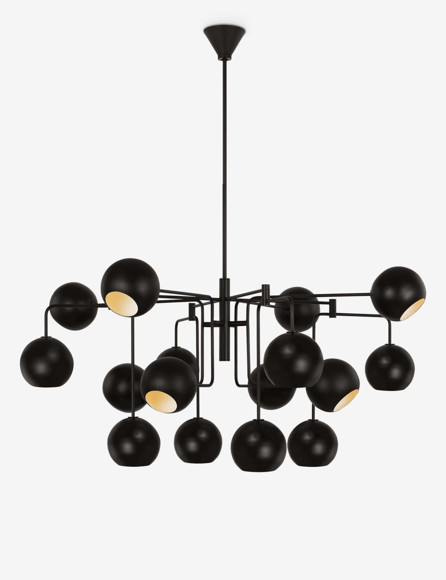 Christiane Lemieux brings her keen eye to a sculptural lighting collection made for livable design—covering every element from lamps and sconces to pendants and chandeliers. With a nod to the mobiles of Alexander Calder and classic French mid-century forms, Chaumont inspires a sense of movement to stimulate your space. This large chandelier brings a modern edge to statement lighting.