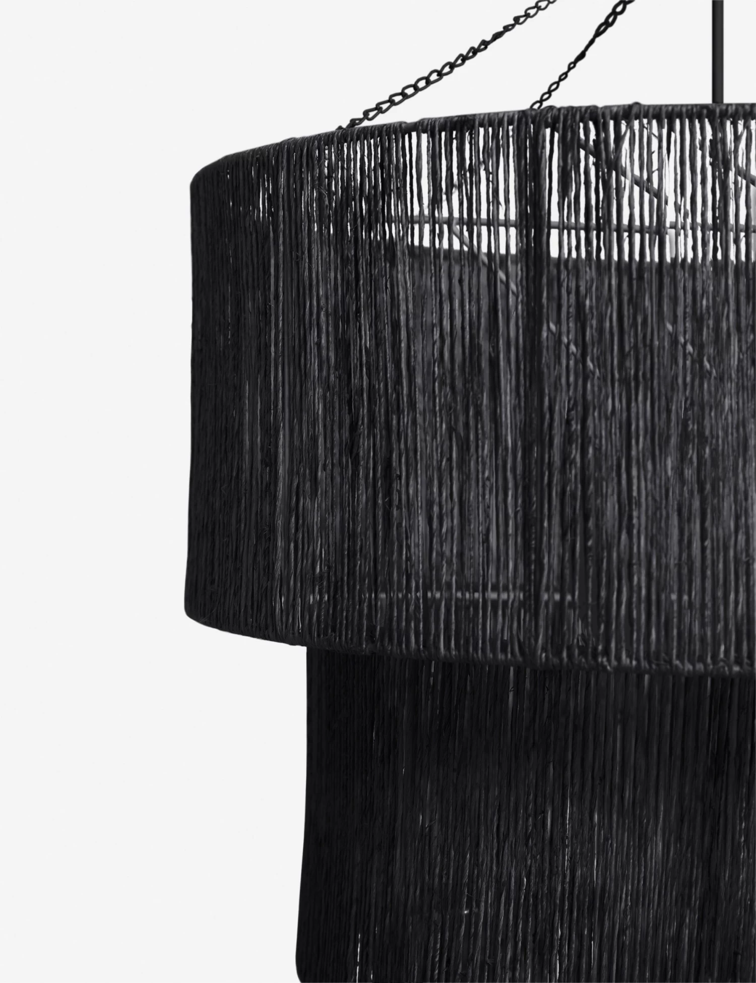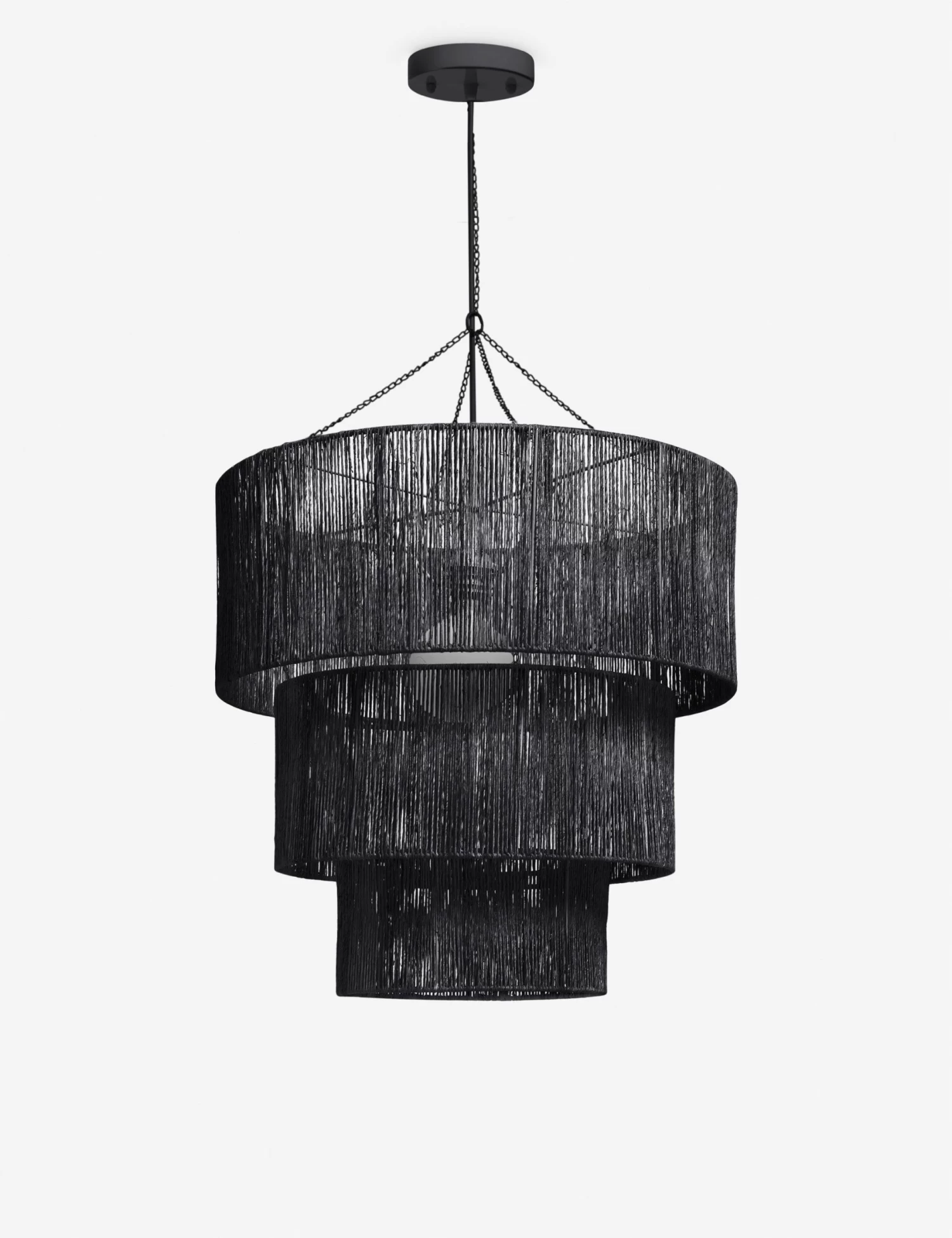 This Chavette ceiling lighting features the elegance of a timeless three-tier chandelier, but updated with a jute-wrapped design to add visual and tactile impact to dining rooms and living rooms alike. In a black finish, make sure to style this hanging ceiling light in a monochromatic, minimalist space or with a layered mix of textural accents.