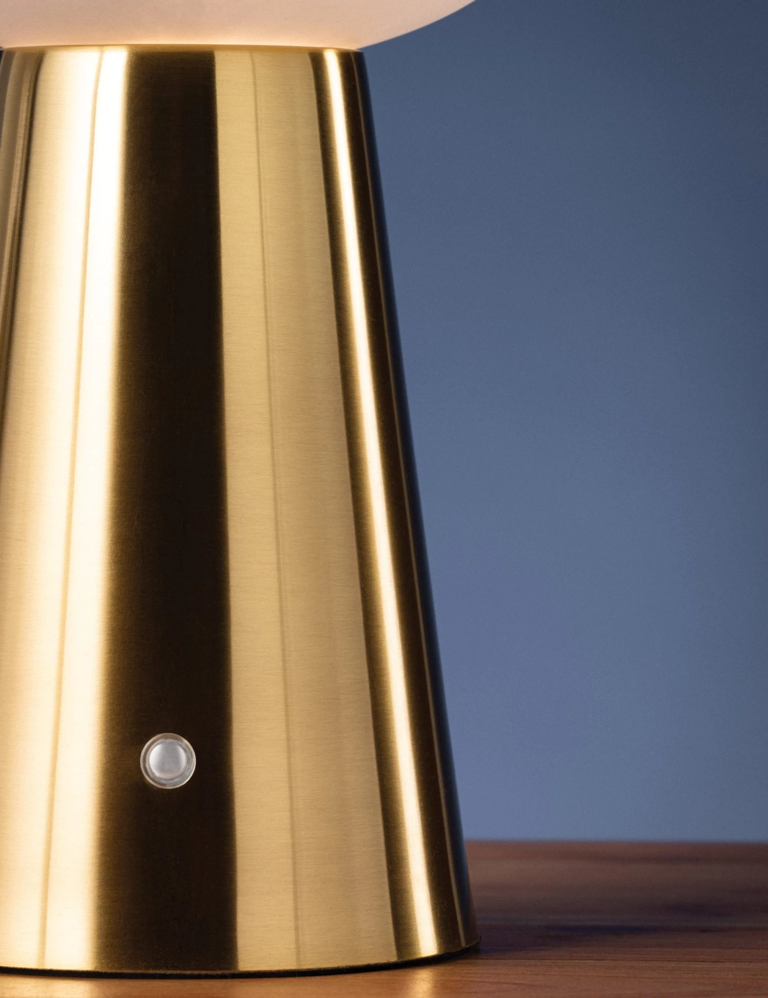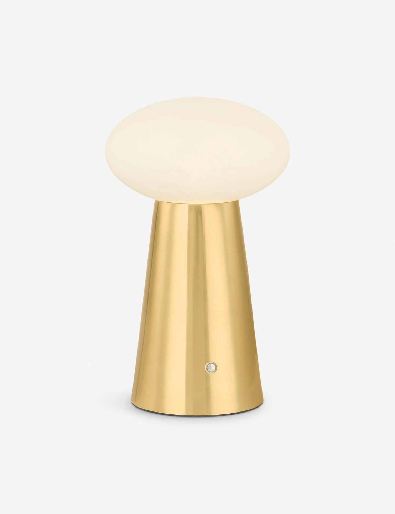 The Clavel lamp makes a bold statement with a small silhouette. The conical antique brass base and cloud glass shade bring warmth and a hint of play, creating a sculptural accent you can move from nightstand to bookshelf. This cordless table lamp recharges easily for a chic touch of light wherever you need it.