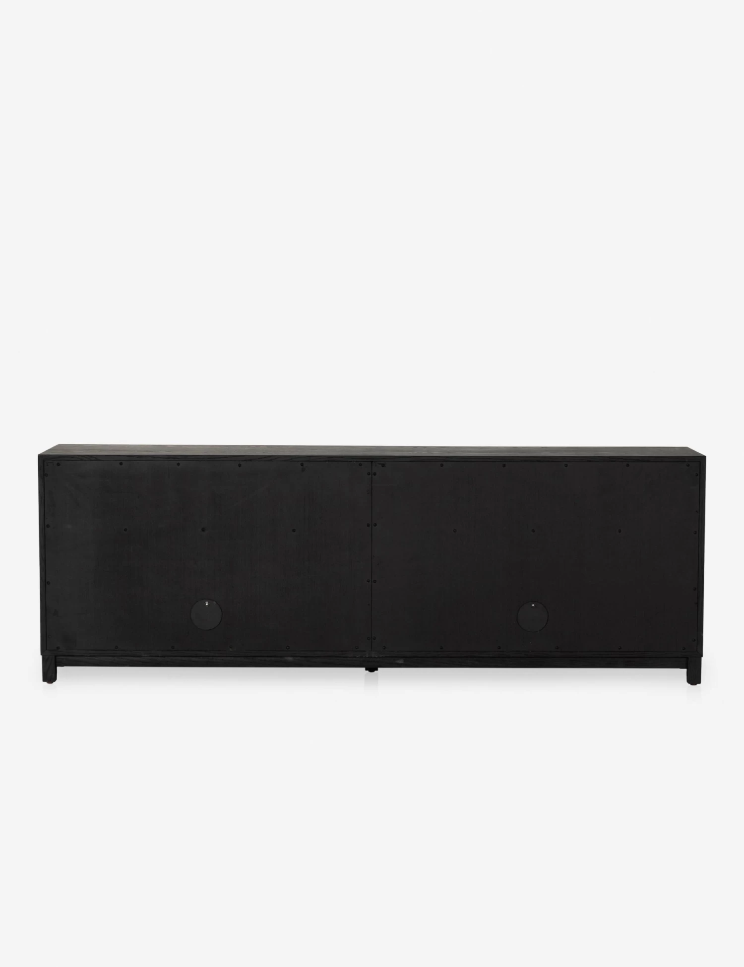 A beautiful construction of black drifted oak brings versatile style appeal to this media console. The glass-front doors open to spacious shelving for display, with interior drawers offering an added touch of storage for loose ends and essentials.