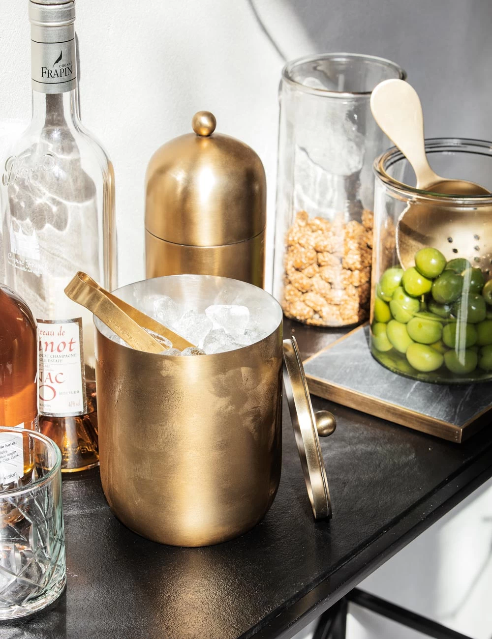 This wine bucket keeps bottles cool and your party fresh with a standout design you can match to the Colin barware collection. Its sleek shape and brass finish offer a luxe touch for everything from brunch to soirees.