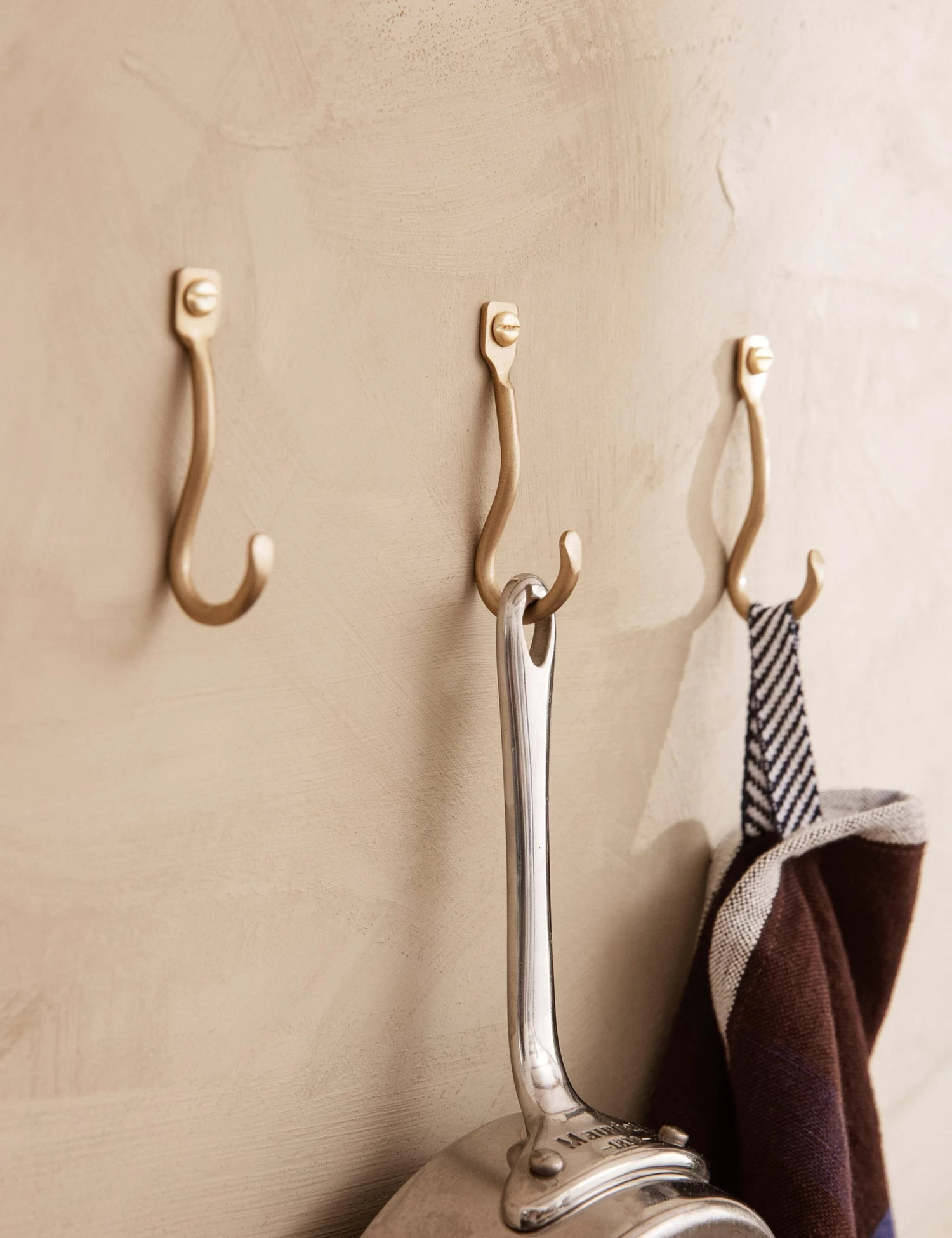 Curvature is here to make your walls stylish and functional. These small hooks are hand-formed in solid brass, imbuing a sense of artistry and elegance. Use this set for a custom entryway arrangement, or style them around your home for the perfect touch of storage wherever you need it.