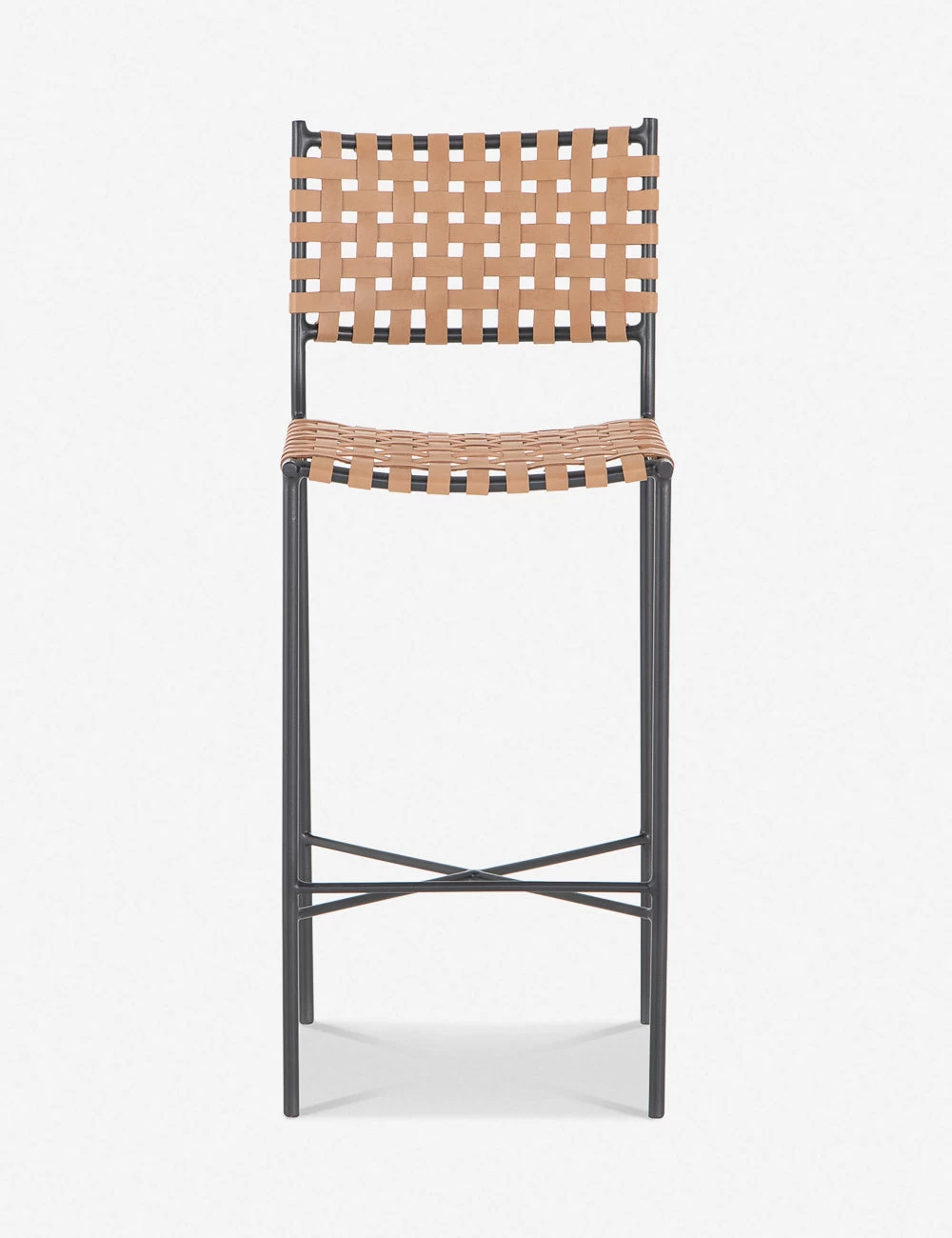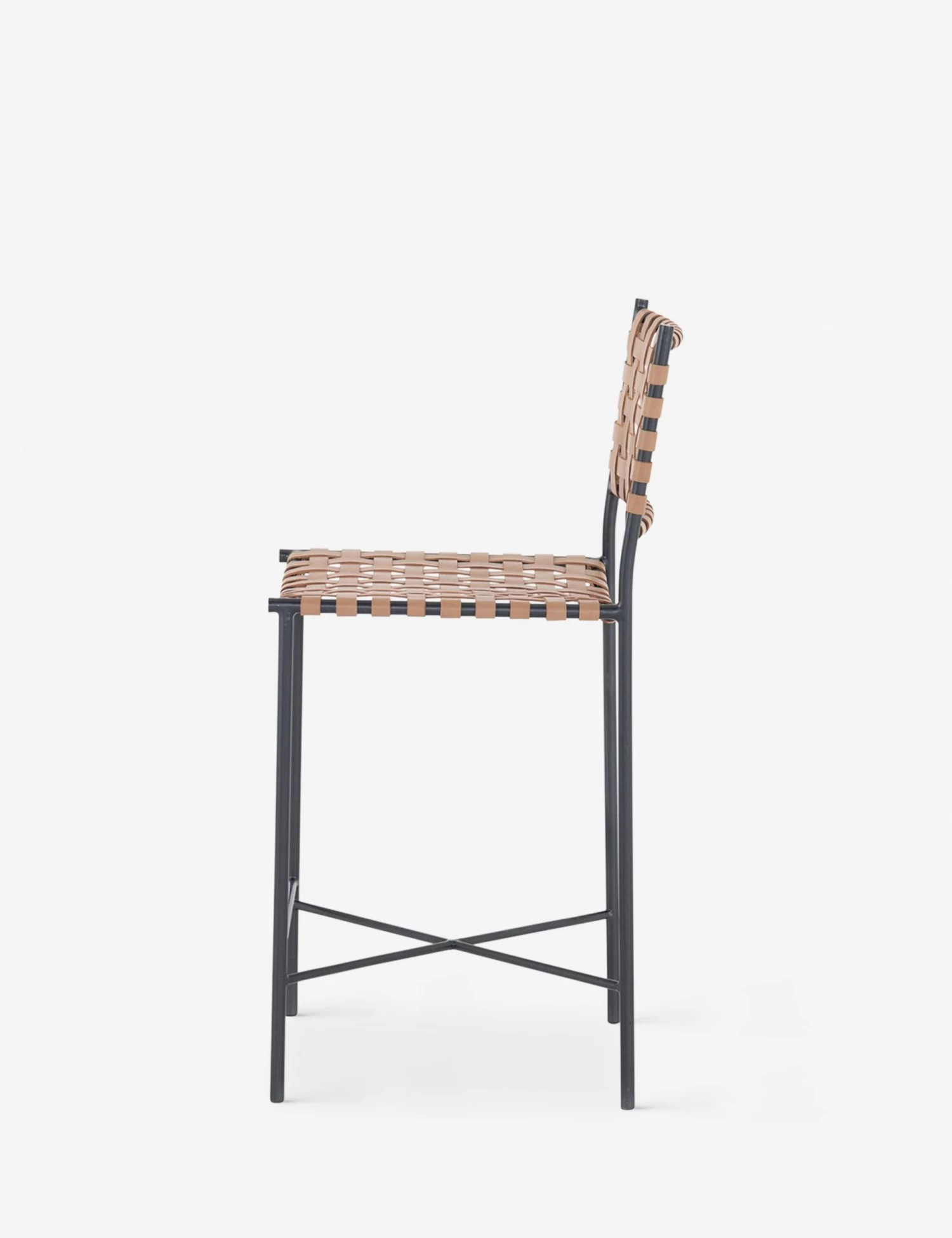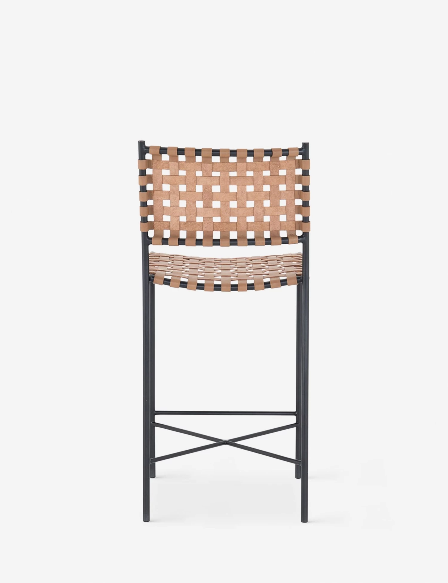 Quality materials and an airy profile lend this stool instant appeal with lasting style. The top-grain leather is hand-cut and fitted to a black iron frame in a chair design that balances traditional notes with a modern edge.