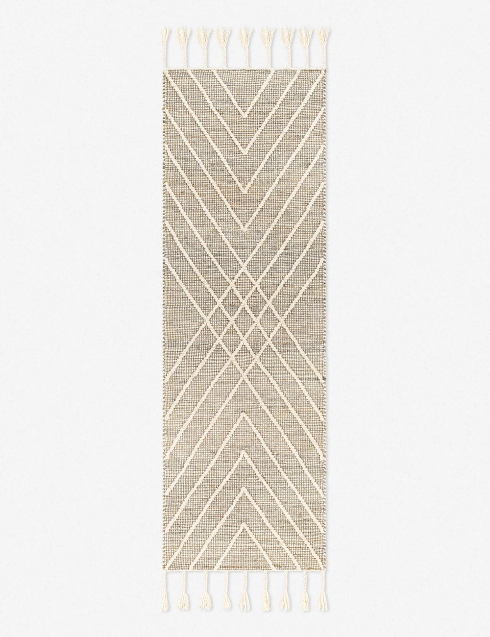 Pairing a unique geometric design with a natural fiber construction, this handwoven rug strikes instant appeal. The tasseled fringe adds a laid-back touch to the crisscrossed design of this modern area rug.