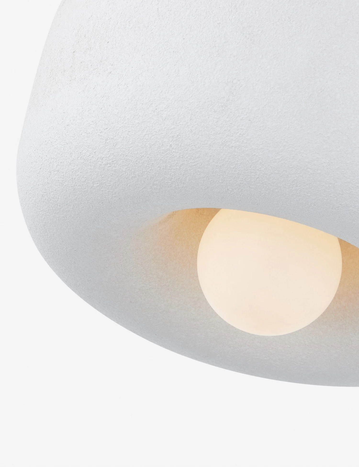 We love the cloud-soft lines of the Denny flush mount light. With a minimalist profile that folds beautifully into small-space designs, this ceiling fixture features a textured white ceramic body with a smooth bulb at its center for a bright pool of light.