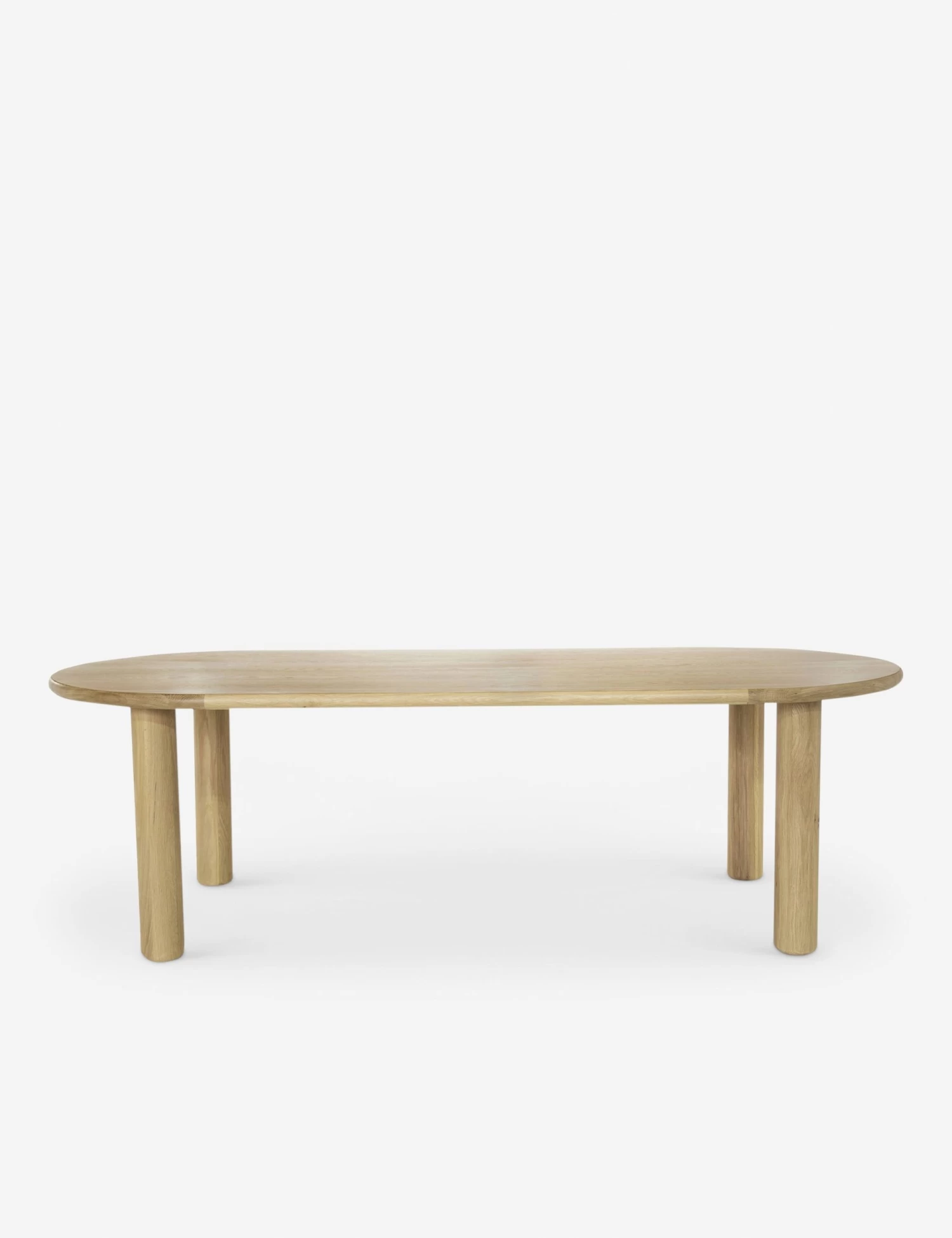 Bring soft impact to dining with an oval table built for elevated everyday elegance. Its modern look is enhanced with a sleek top and thick column legs in oak, creating a naturally chic dining table to gather around.