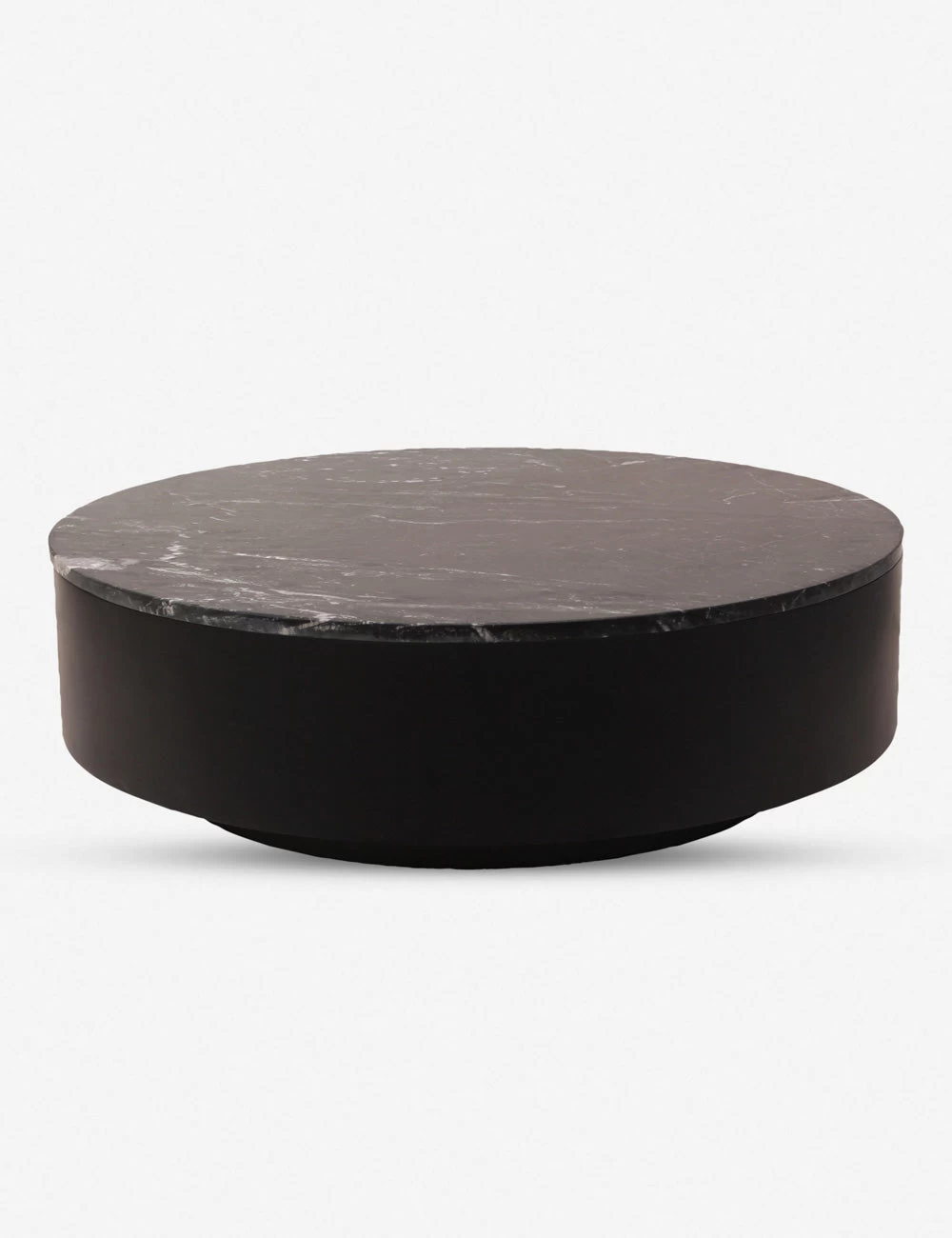 Sleek, bold, and elemental. The Duke Round Coffee Table features a black marble top offering polish and depth to any room. With its low profile and round silhouette, this marble coffee table provides a tone-setting centerpiece for a refined lounge or luxe home office.