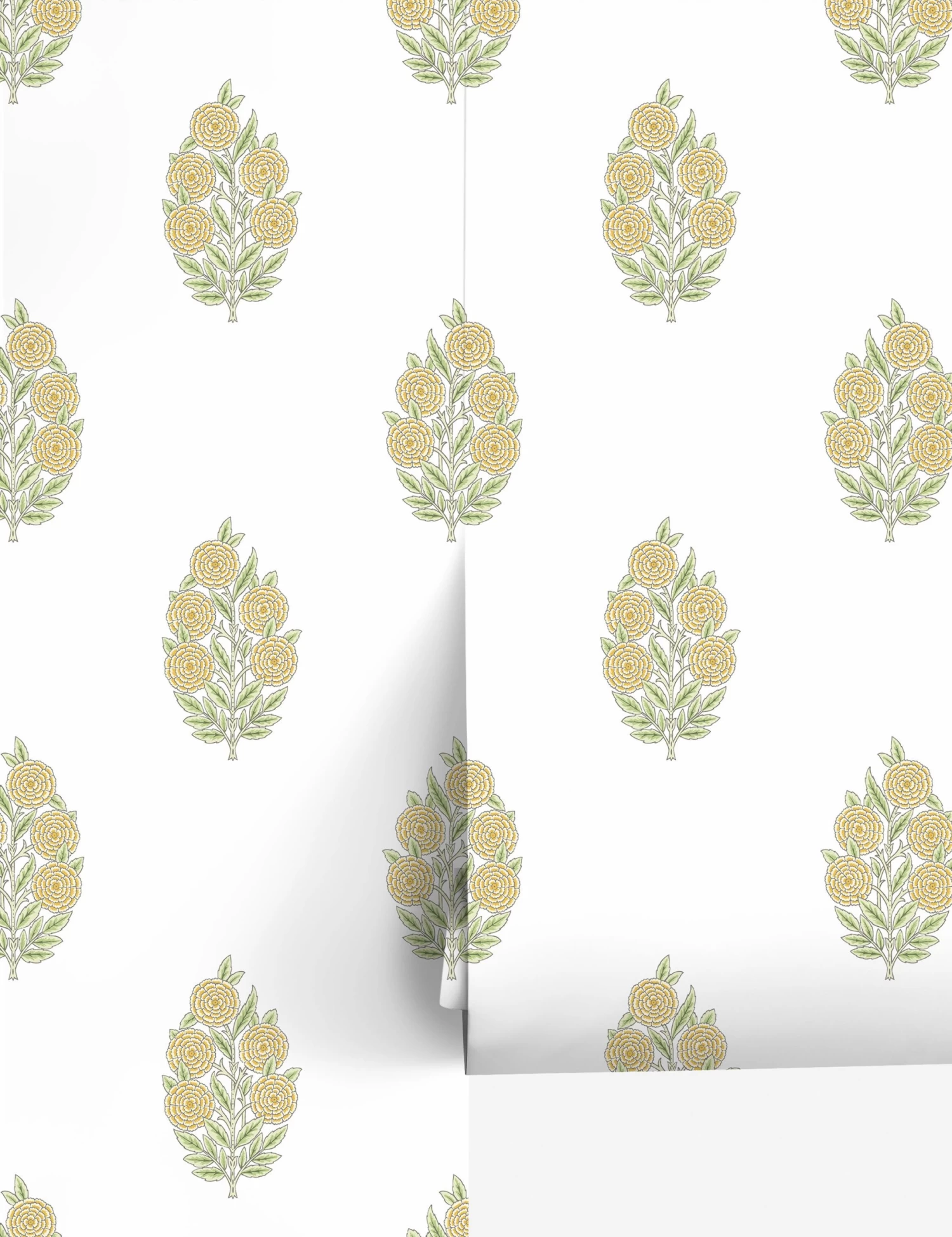 Add fresh charm to your space with this floral wallpaper pattern featuring a large-scale repeat of intricate flowers on a white backdrop. The design offers delicate details and a touch of color with minimalist impact for modern decor. Instantly transform your walls with peel + stick wallpaper—it’s easy to install and provides a mess and residue-free removal.
