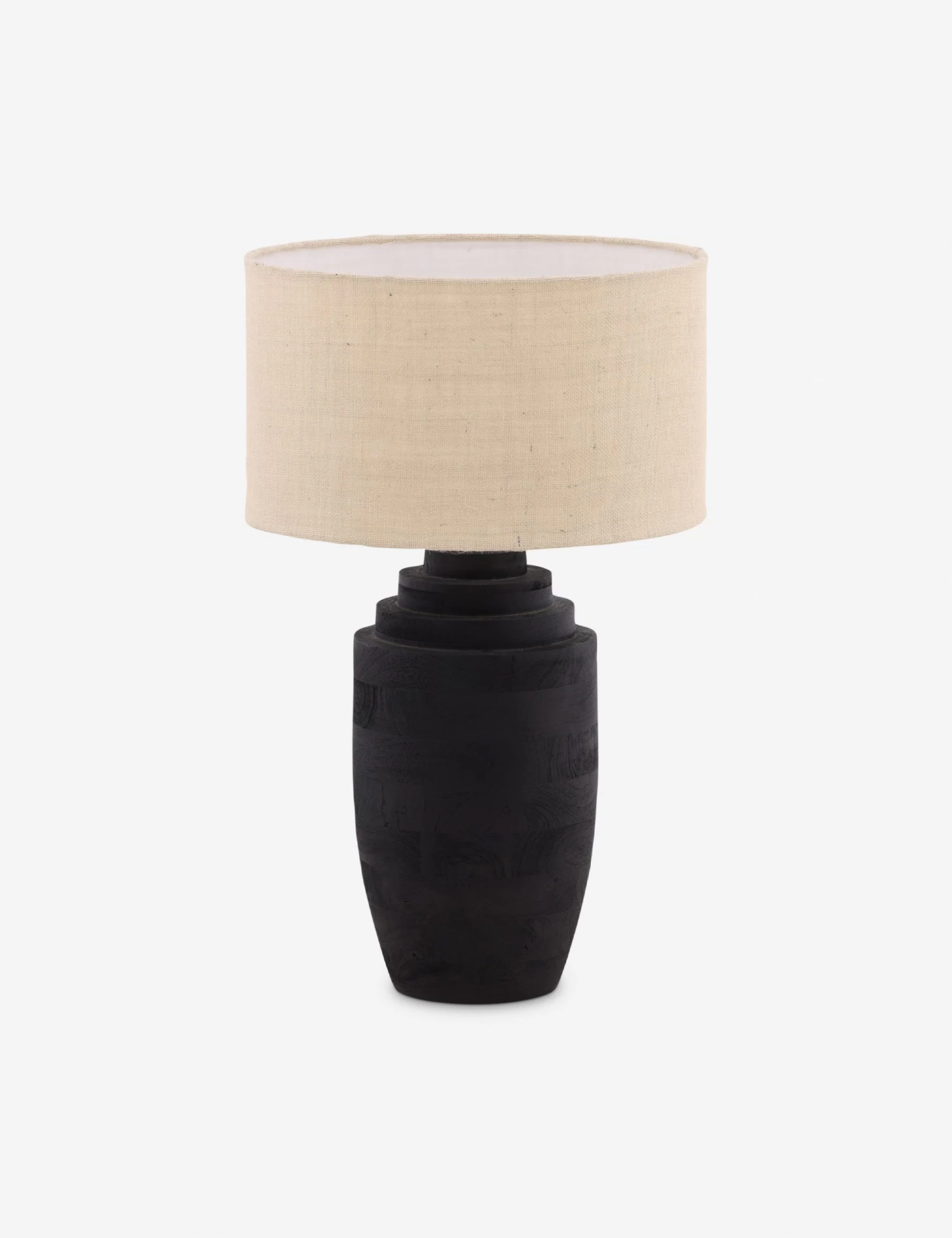 With a sculptural silhouette and matte black finish, this lamp doesn’t just light your style—it brings the look together. The modern design is grounded in organic textures with carved wood grain and a woven jute shade. Sized to make a statement without overwhelming the room, this table lamp strikes that perfect in-between: bold enough for a console or sideboard, refined enough for a nightstand.