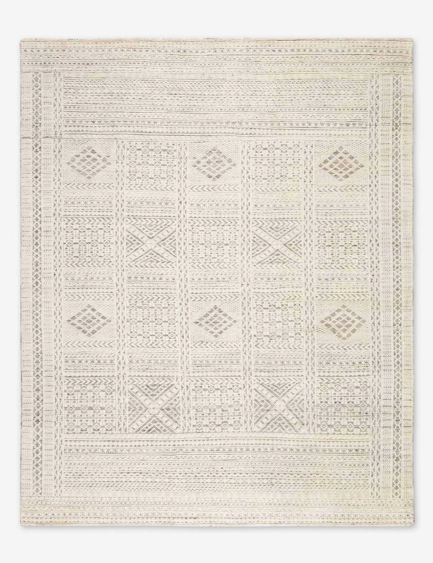 Hand-knotted using the highest quality wool, the Ellori Rug makes for an intricately detailed, beautifully crafted focal point for your space. In a bright cream and gray palette, this area rug pairs a striking geometric pattern with luxe, soft texture.
