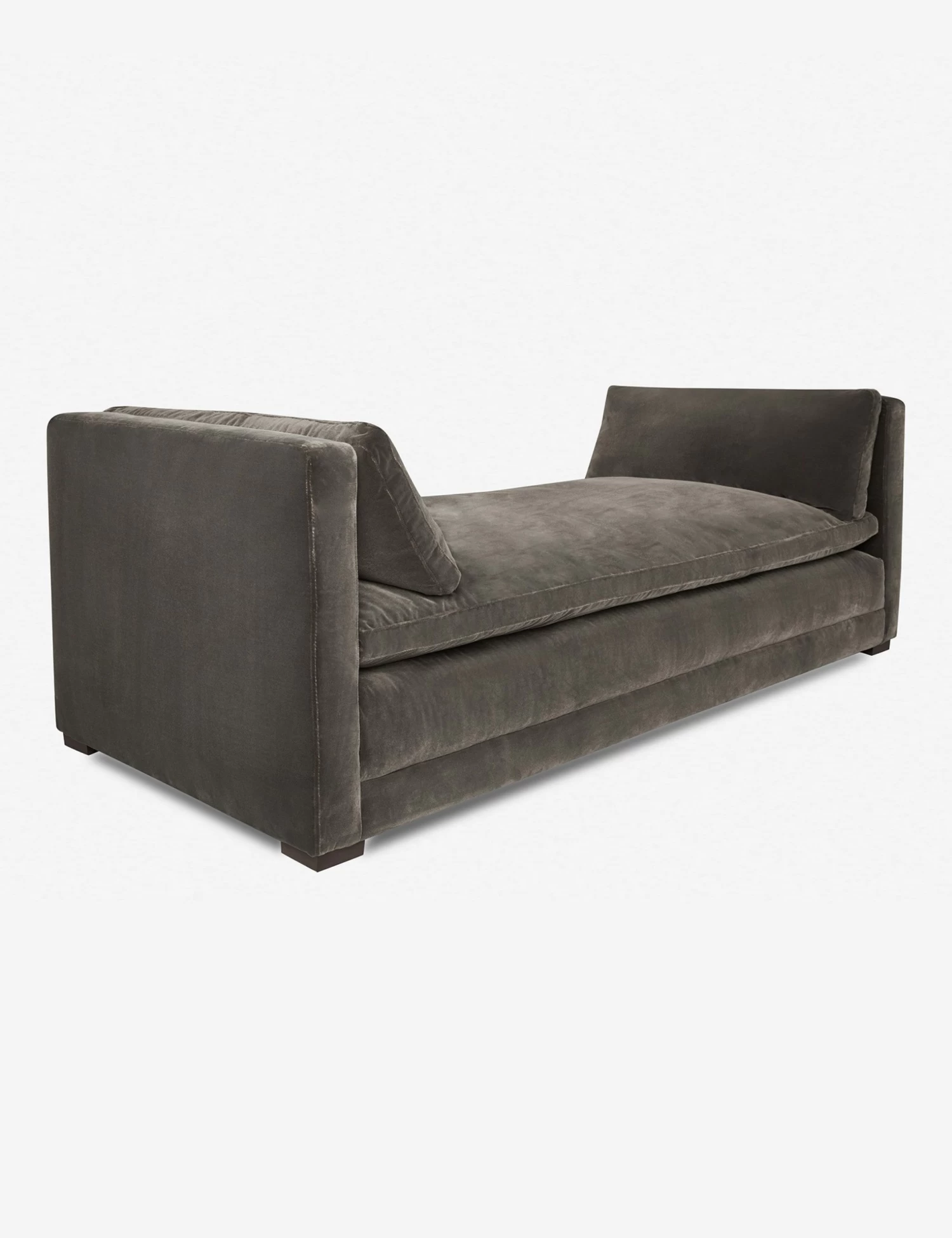 Polish a cozy lounge curation with our Elvie chaise. The clean-lined silhouette offers a subtle sheen trimly tailored in velvet, featuring a pillowtop bench with bolsters. This chaise sofa looks equally inviting in the center of your living room as it does nestled under a large picture window.