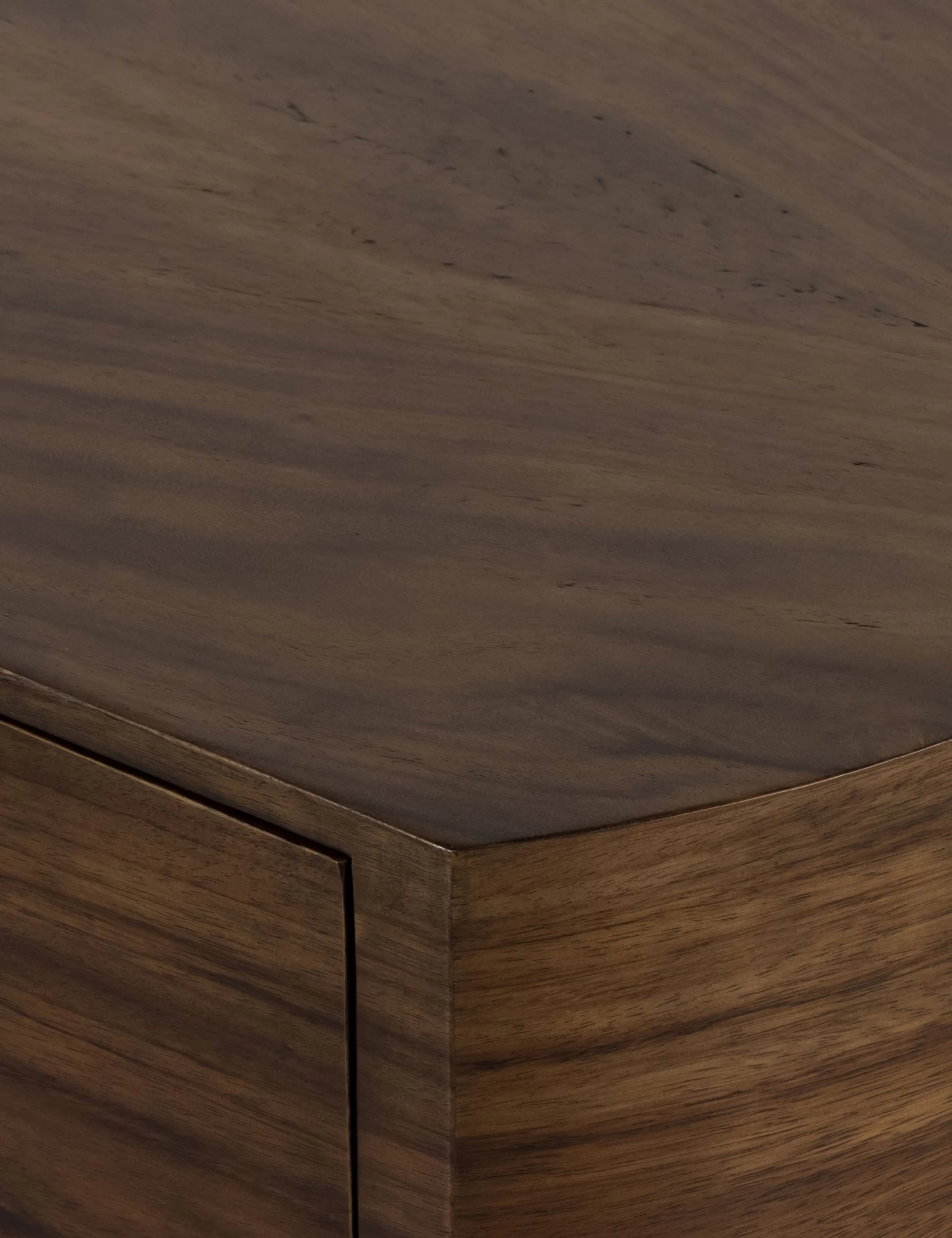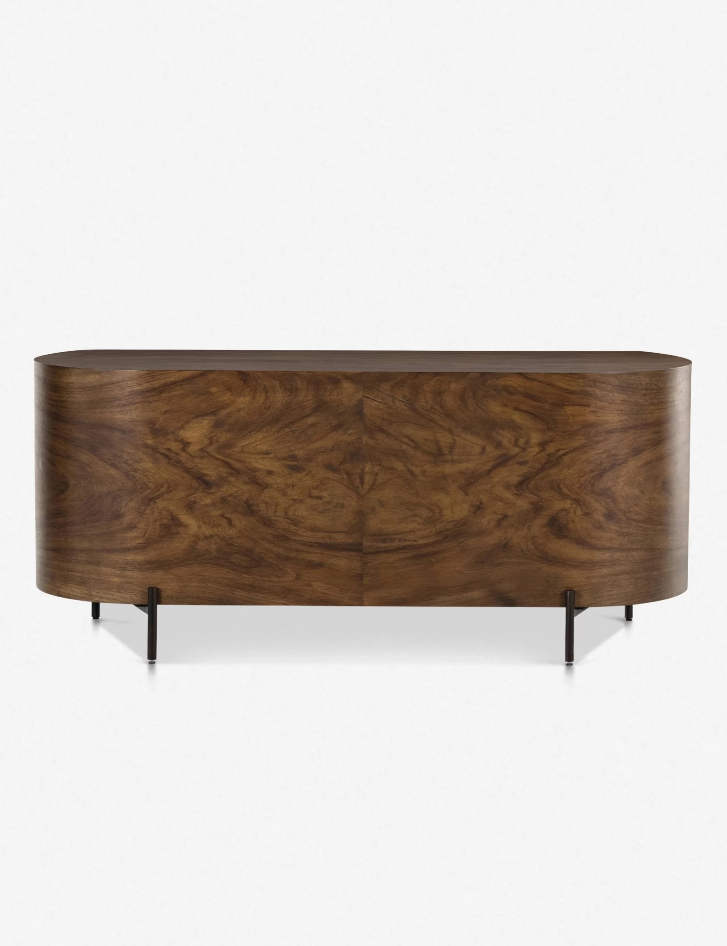 The dramatic curves, natural wood graining, and generous size of this executive desk redefine the look of your home office. Sculpted from Guanacaste wood, push-latch side cabinets and drawer offer spacious storage. A fully-finished front and curved back allow you to float this desk within a room for a dramatic layout.