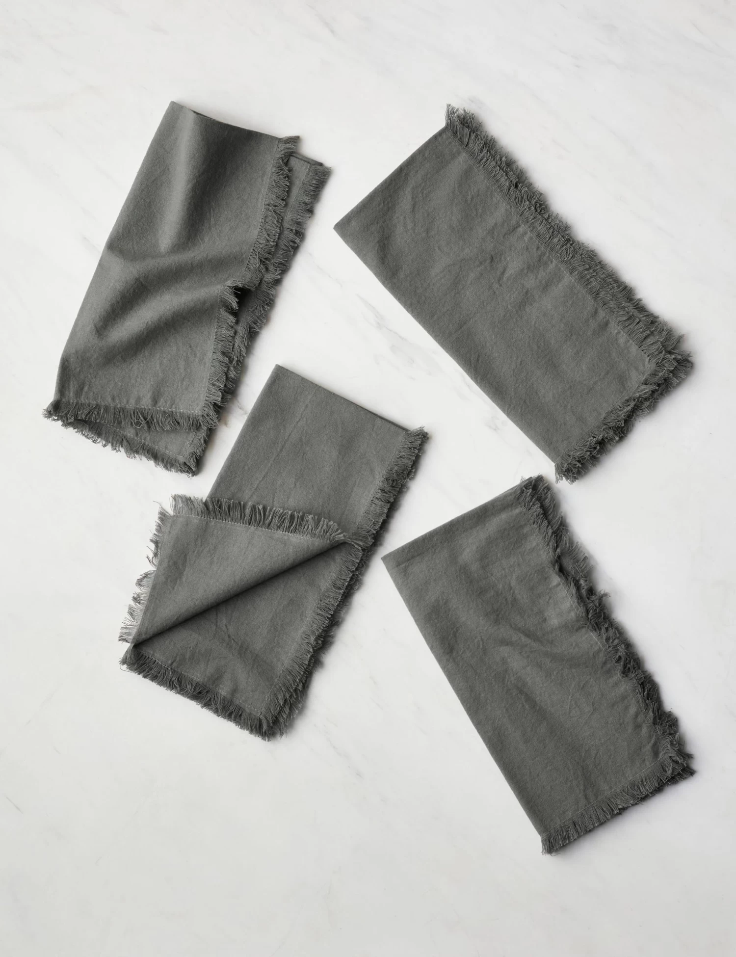 Whether you are setting the table or reaching for a single cloth, this set of dinner napkins offers the grounded, soft touch you need. The cotton is fringed and hand-dyed in a range of solid colors for a chic look that can dress up a gathered table or fold into your casual snacks and meals. Wash and reuse this eco-friendly kitchen essential for endless practical appeal.