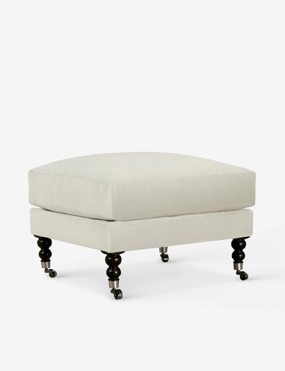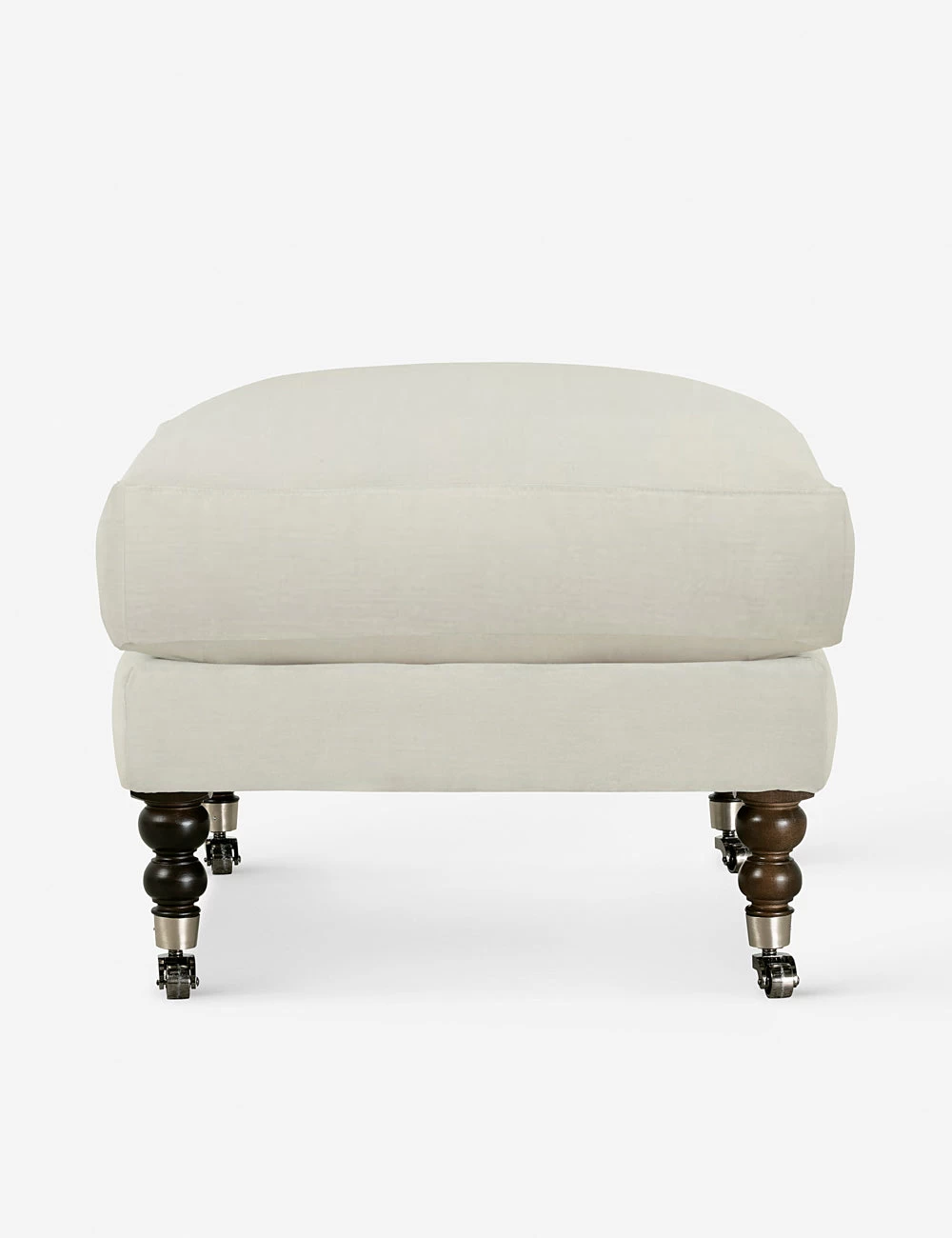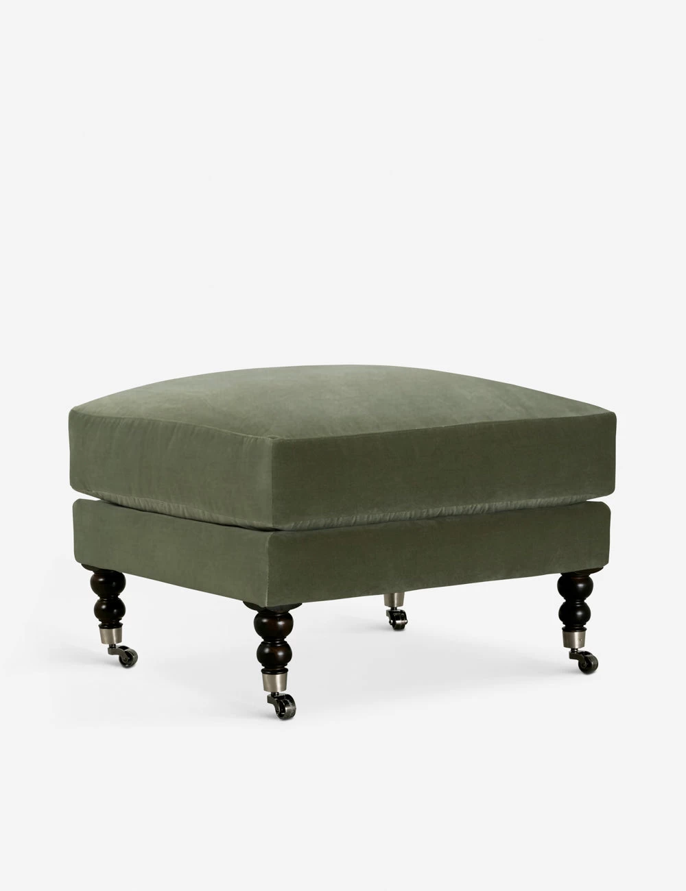 Add a touch of vintage flair to your home office or lounge with this timeless ottoman. Antique styling pairs velvet upholstery with ornate, turned legs with wheels to effortlessly float in the room. Pair this plush footrest with the Fabienne collection or style it as a standout addition to a collected space.