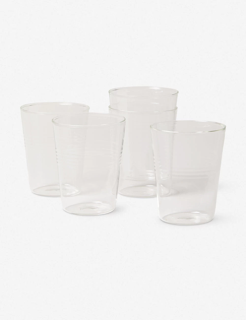 Vermont-based studio Farmhouse Pottery creates handcrafted accents and table essentials with rustic charm. Crisp silhouettes and a lightweight design set off this endlessly versatile, modern glassware collection. Each set features six dishwasher-safe glasses that stack for easy storage.
