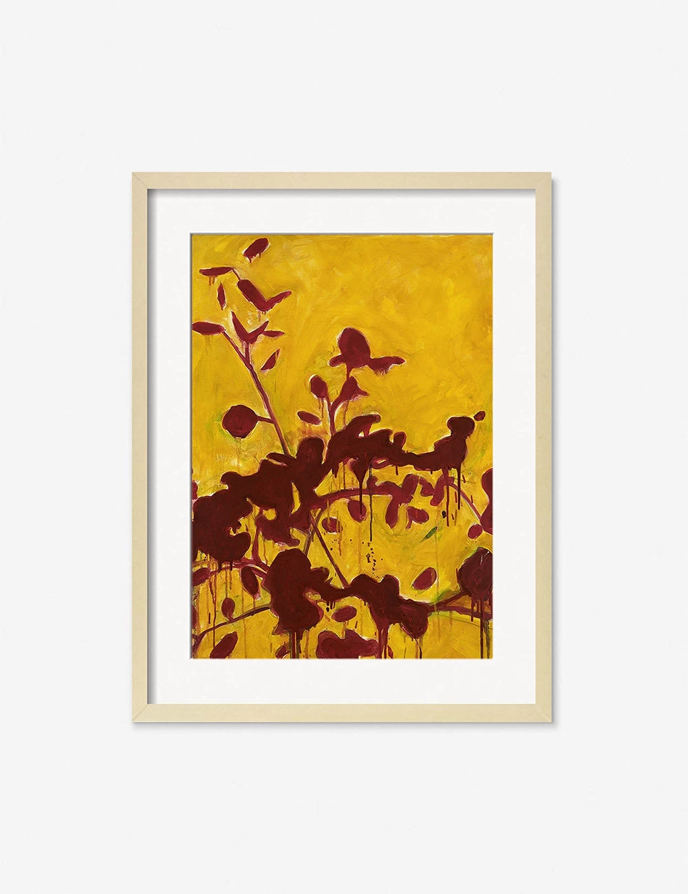 Brant Gordon uses bold colors and dramatic composition to imbue his work with a sense of immediacy. This wall art print features an abstract floral shape on a bright field of yellow. Its upward vertical movement makes it the perfect painting to hang in a tall space or alongside other smaller pieces of wall artwork.