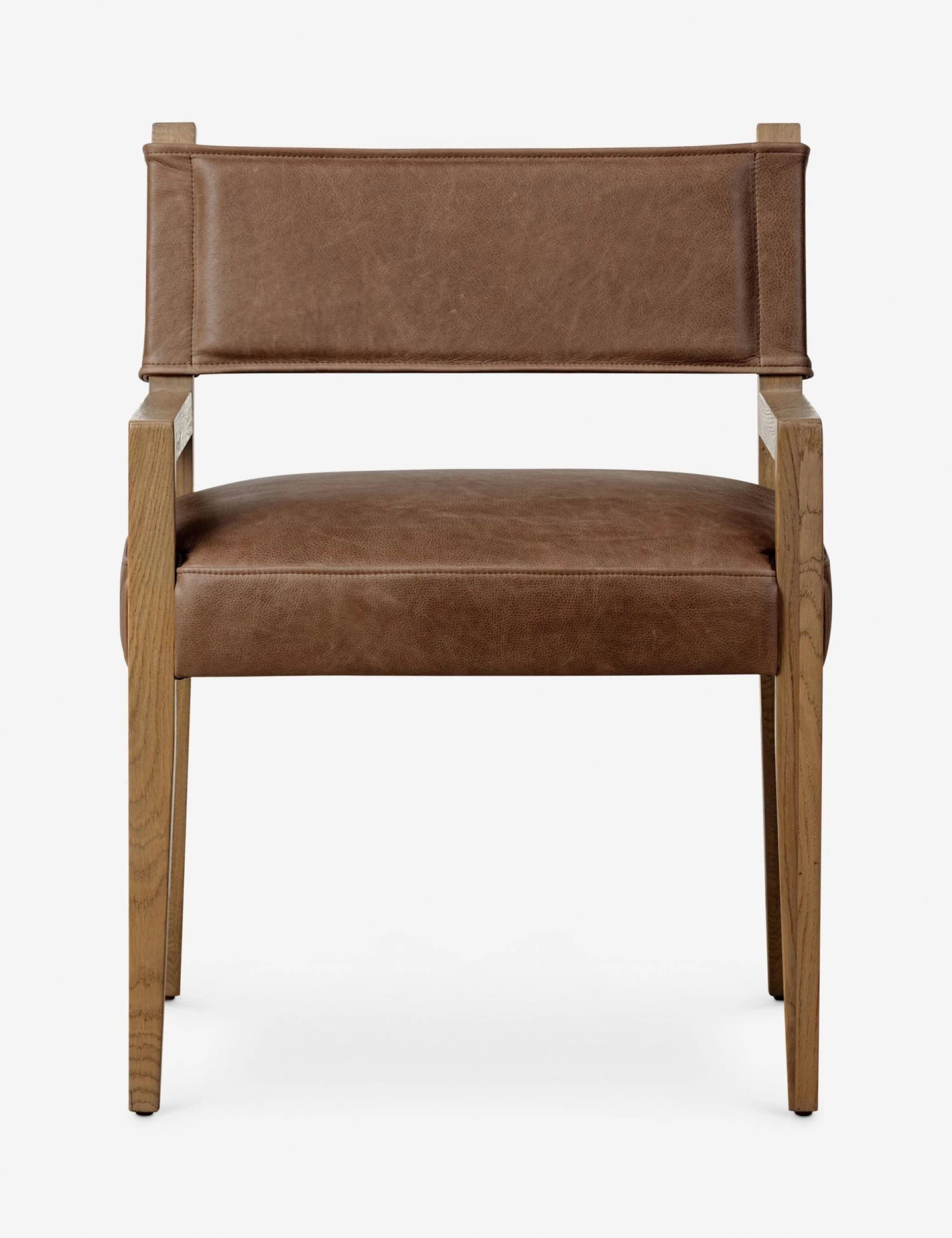 Clean lines and timeless materials give this dining chair a warm, grounded feel. A natural oak frame supports the leather-upholstered dining seat and sling-style back, offering durability with an understated style. The mix of textures brings rich character to this design—elevating casual and formal tables alike.