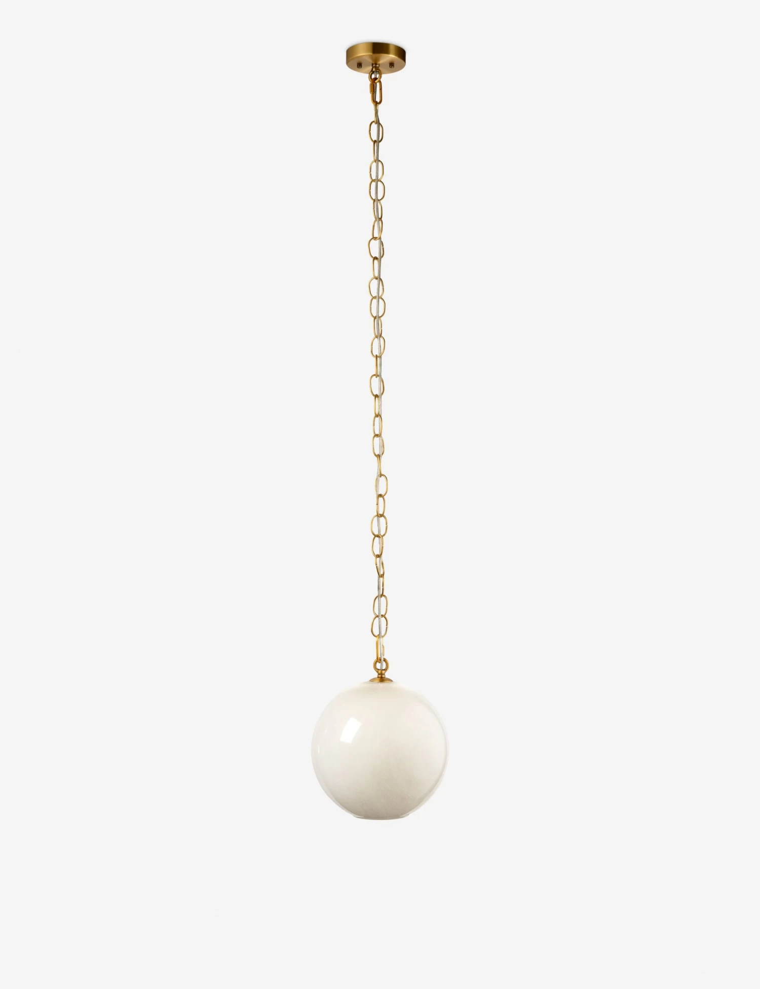 With its hand-blown glass shade and antique brass chain, the Franzi pendant brings effortless polish to cozy curations. The rounded silhouette and warm hue offer soft contrast and sculptural appeal. We love this pendant light for cozy nooks, entryways, or grouped for an artful display.