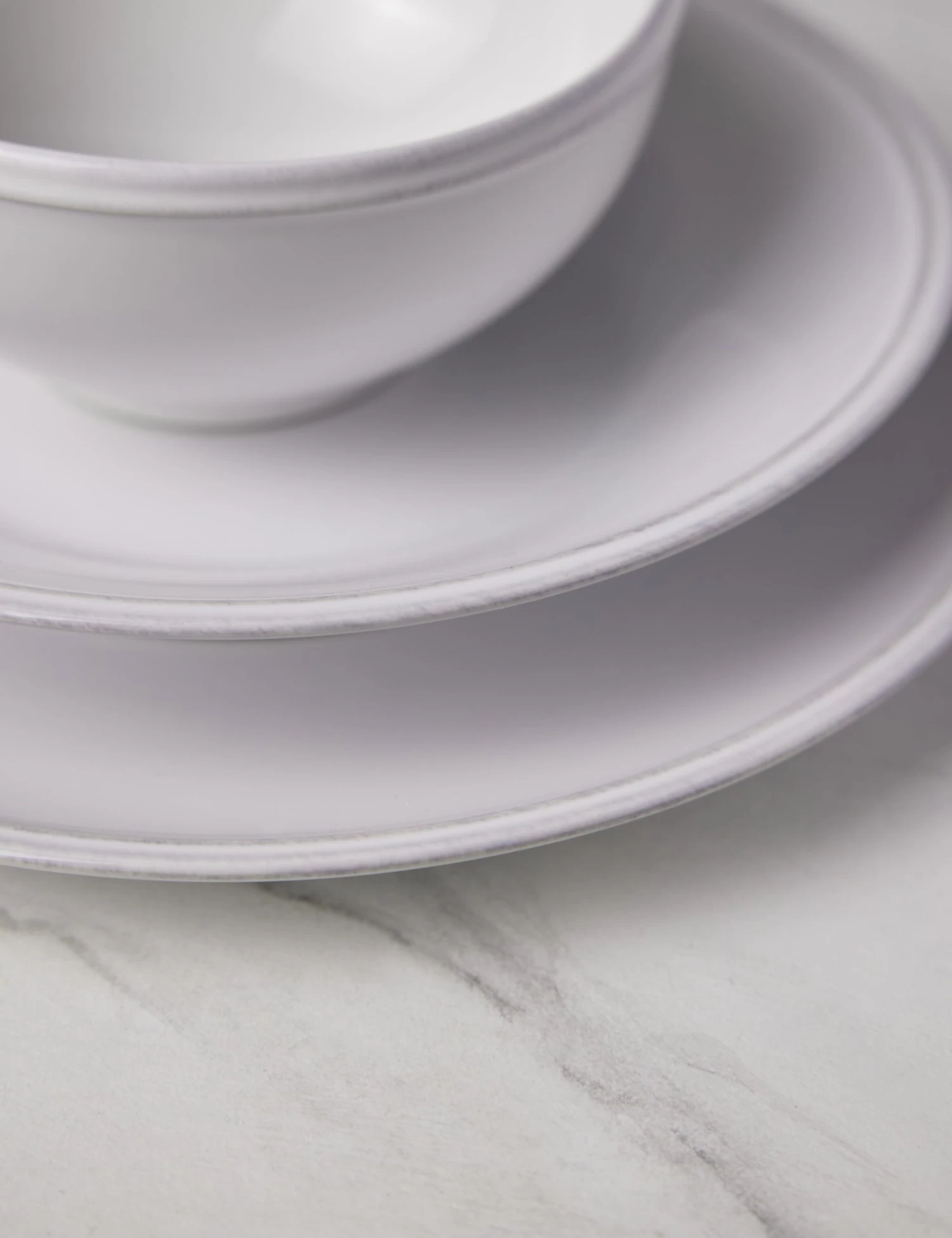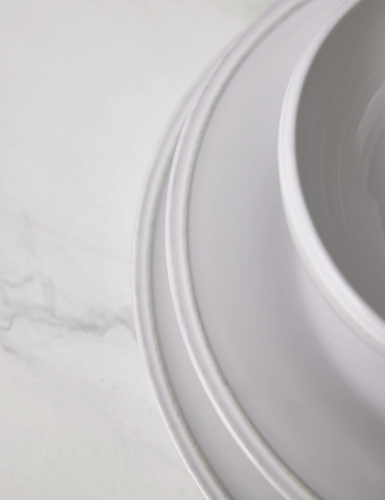 Refined lines, versatile design, and durable stoneware construction make the Friso dinnerware collection a favorite, from fine dining to everyday eating. The grooved edge is hand-painted for an artisanal touch that will fit perfectly into your home decor.