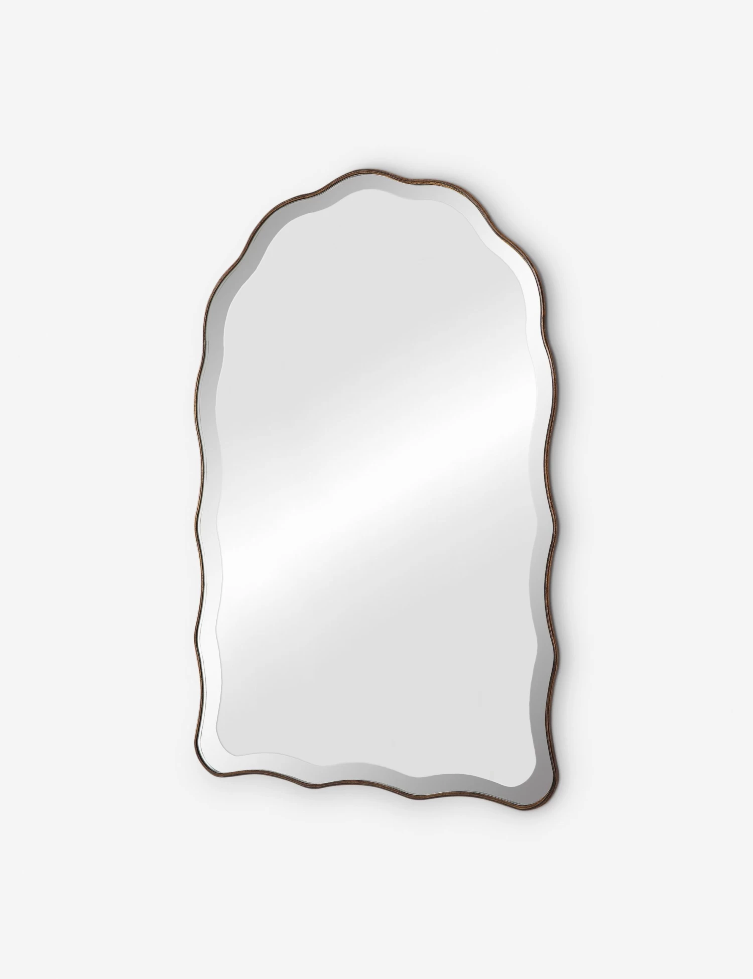 Scalloped edges bring fresh appeal to this arched mirror. Its signature shape is finished in an antique bronze with gold highlights for a subtle expression of patina. We love this mirror for a stylish vanity update or layered behind a dresser-top curation.