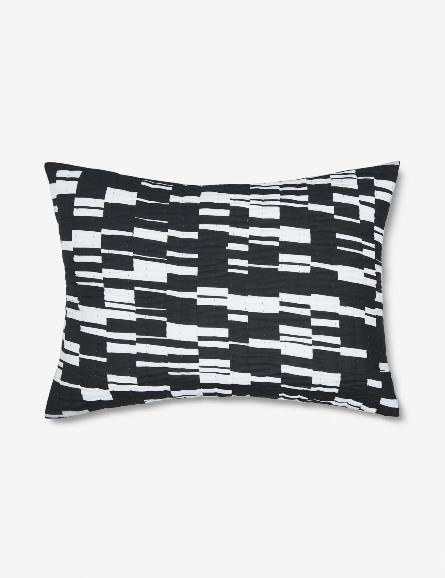 Add a dynamic touch with this quilted pillow sham, which lends abstract geometric design and a monochromatic color palette in natural and black. Woven from lightweight cotton voile, this sham is an ideal layering piece to evolve the look of your bed. Pair it with its matching coverlet or style it on its own to pop against neutral bedding.