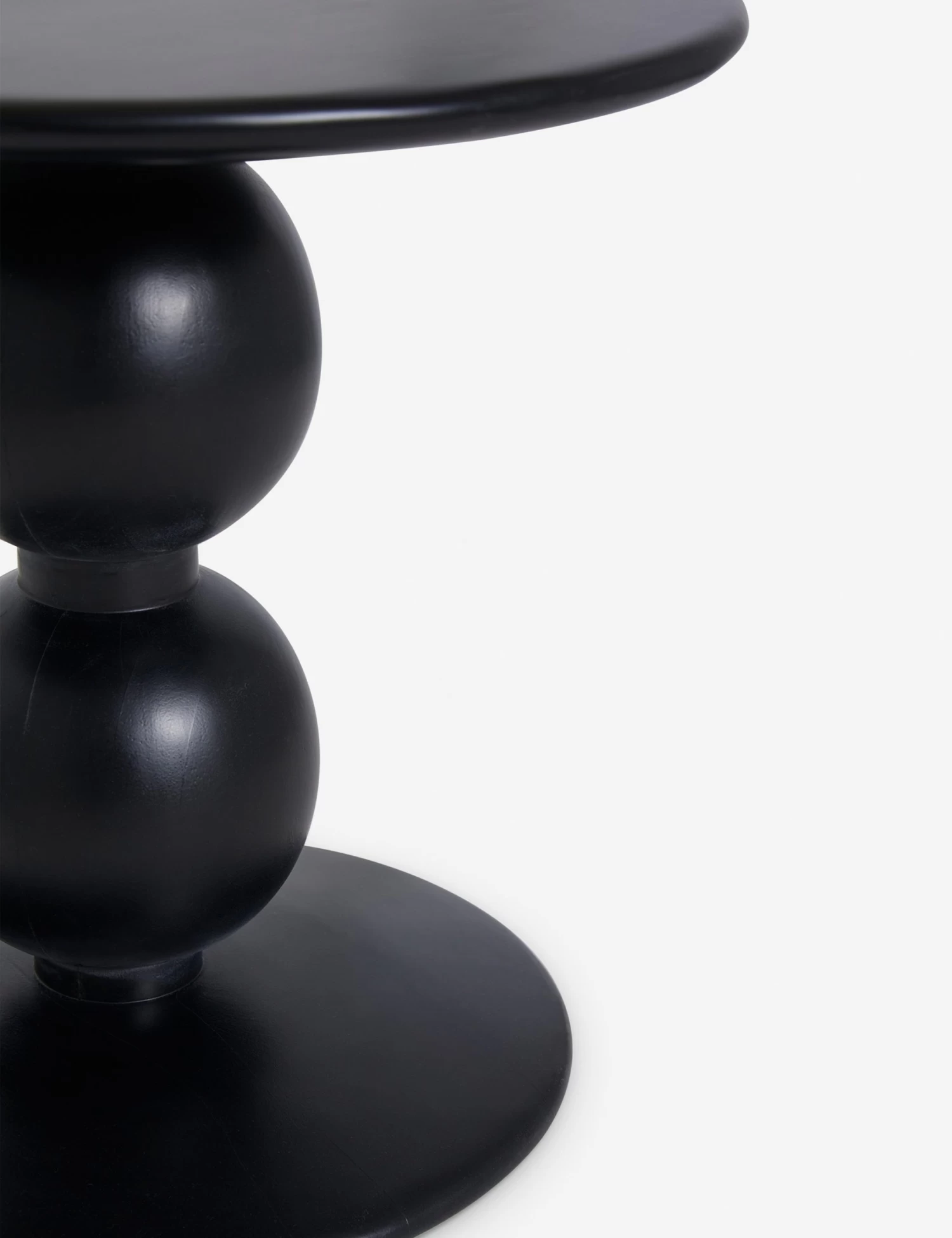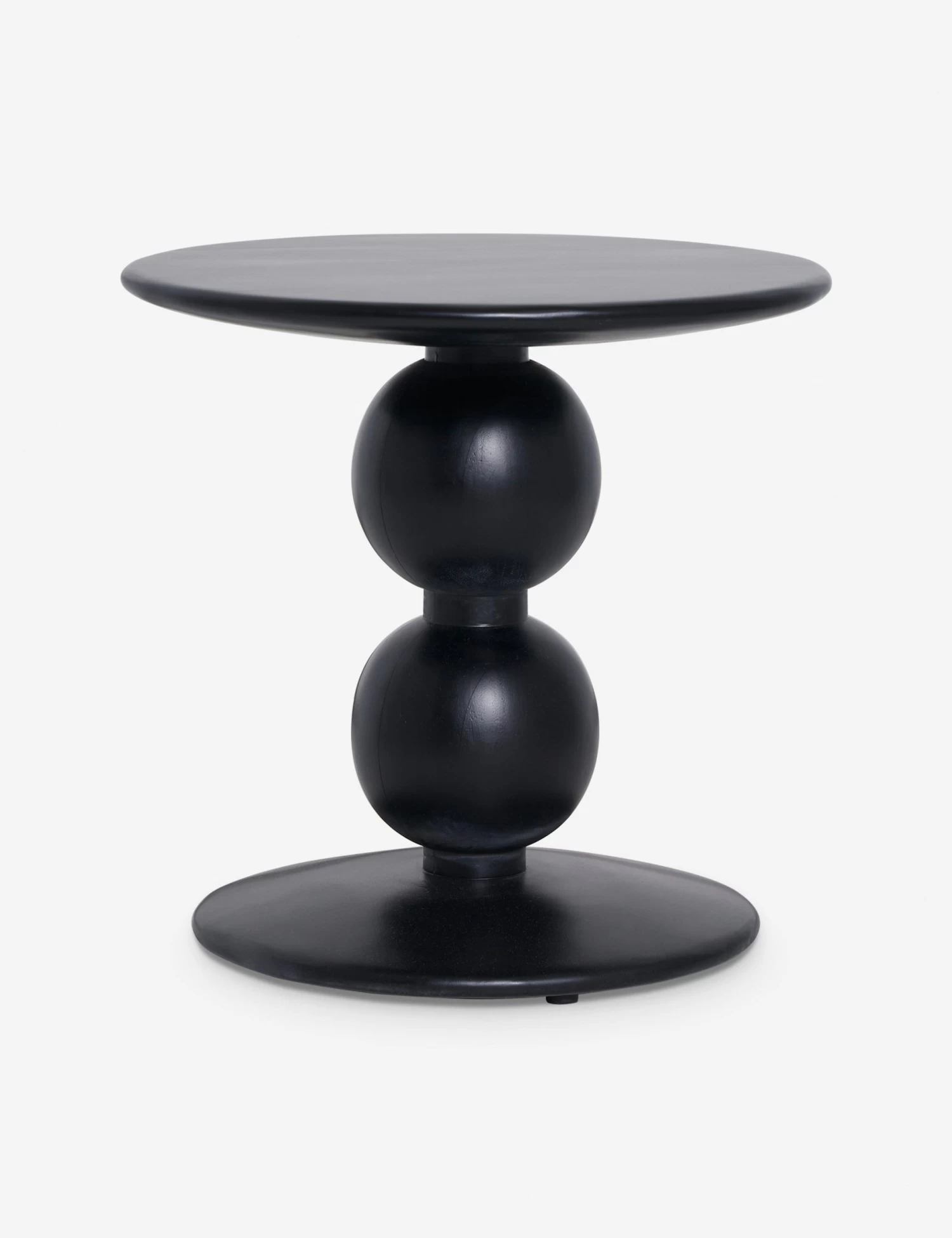 Clad in a black finish and set for impact, this side table is a sleek, tone-setting addition to the room. Two spheres give the silhouette a subtle floating effect which adds to the dramatic appeal of its curvilinear form. Style this end table next to your sofa or favorite lounger for that perfect modern touch.